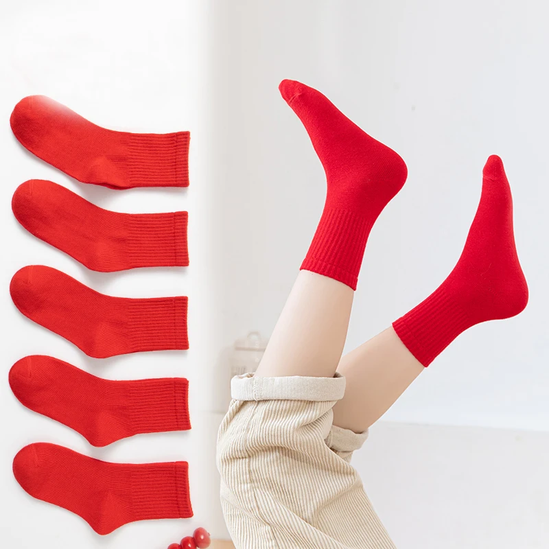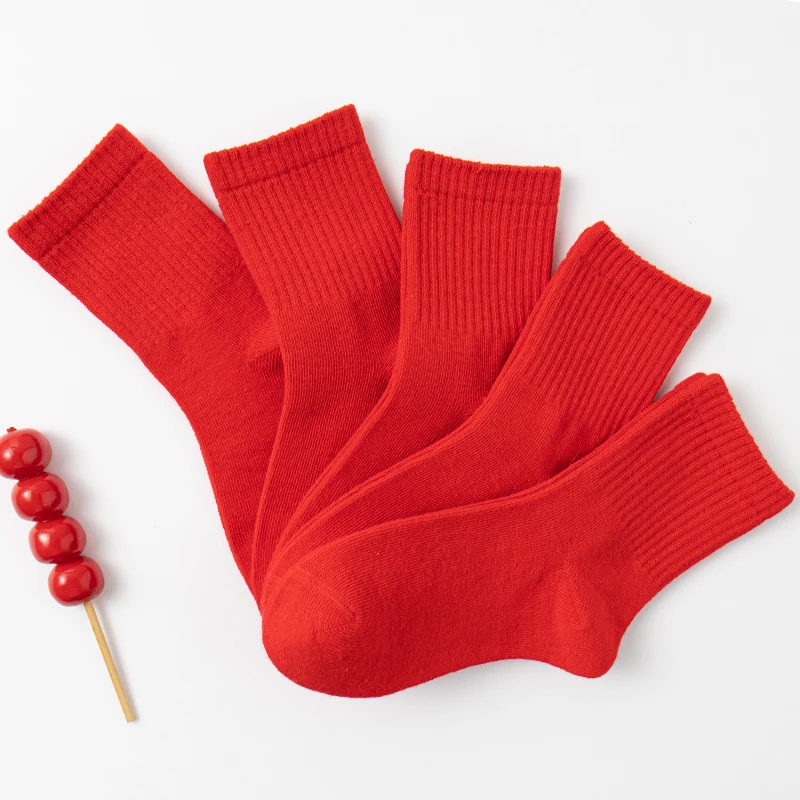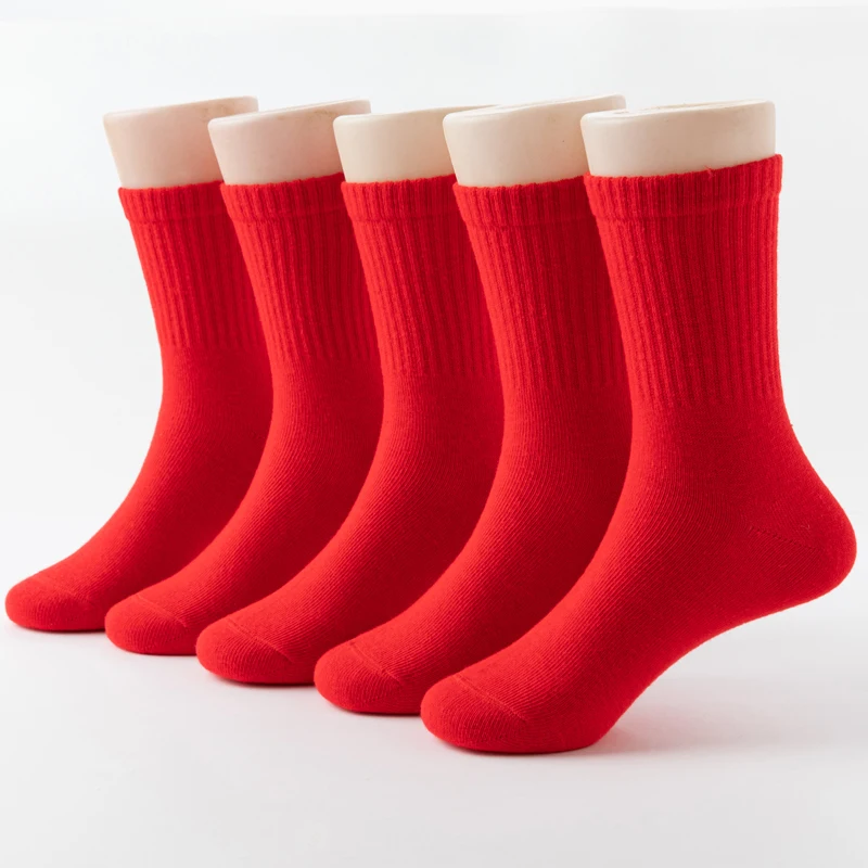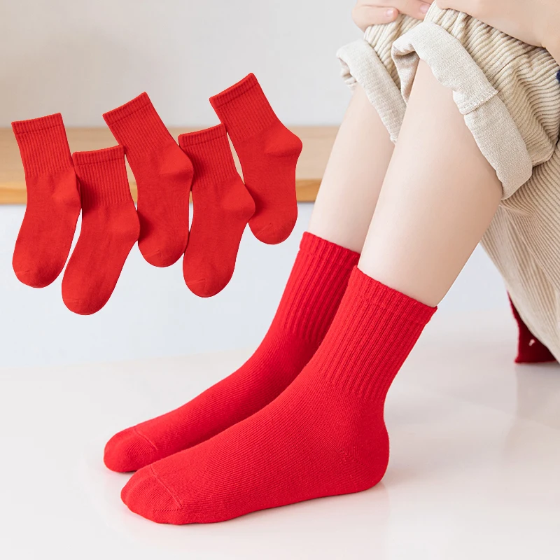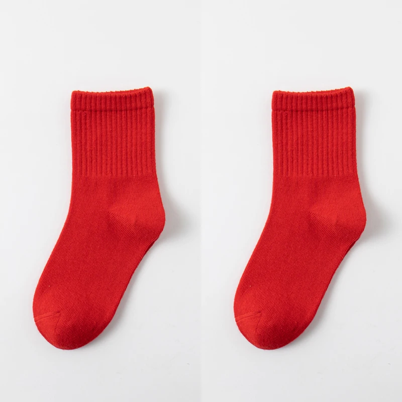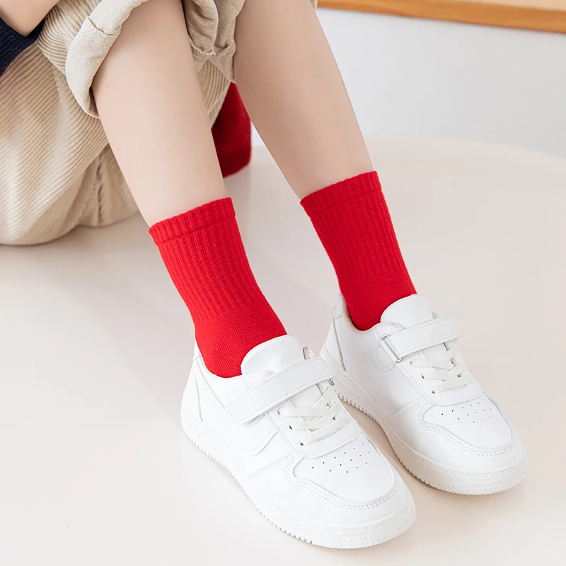 Children’s Pure Red Cotton Socks Spring and Autumn Boys and Girls Sports and Leisure Socks 2-12Years