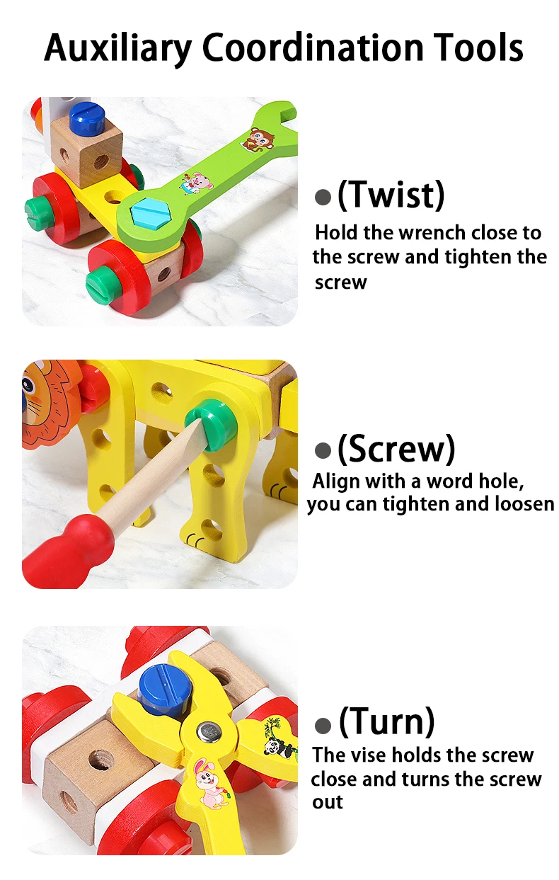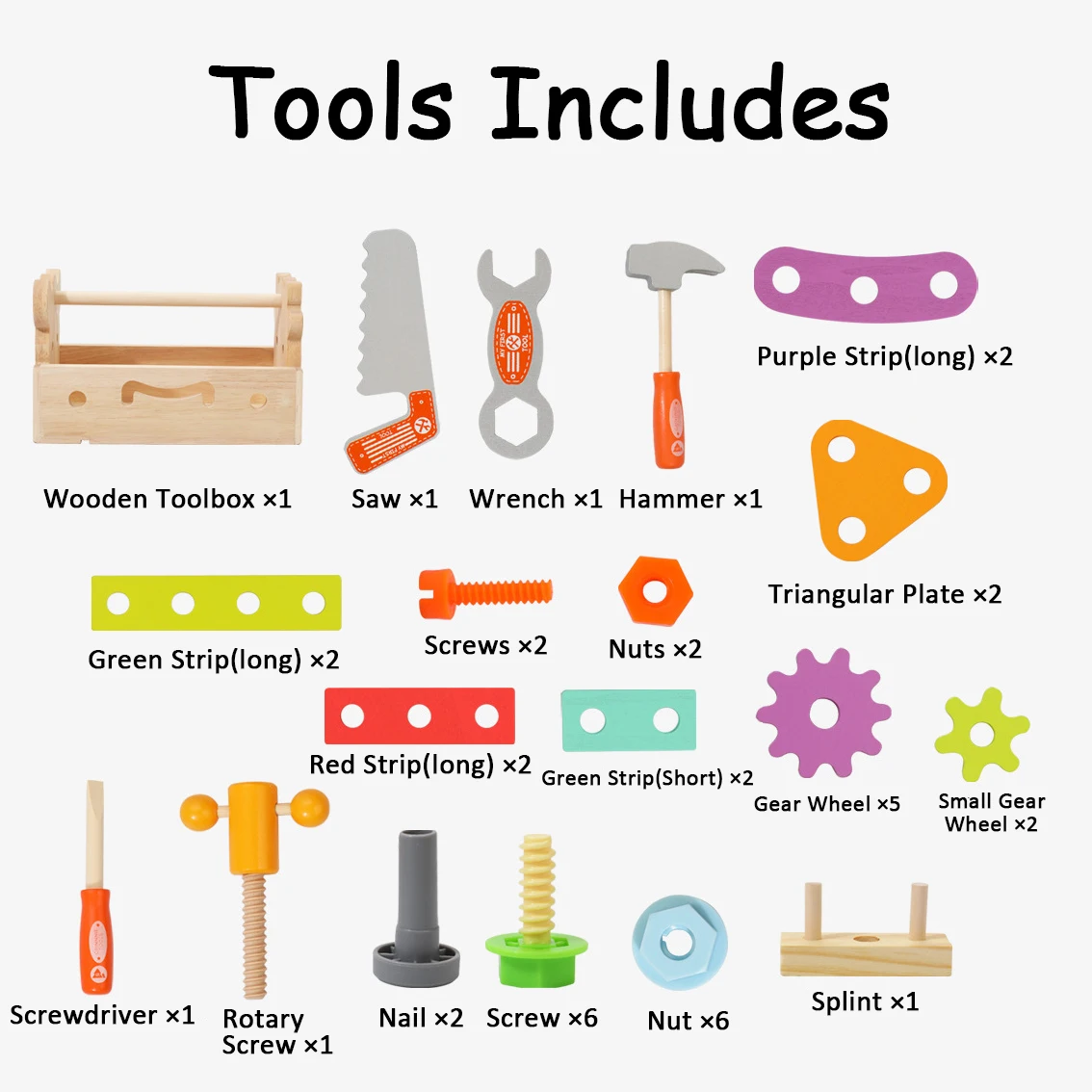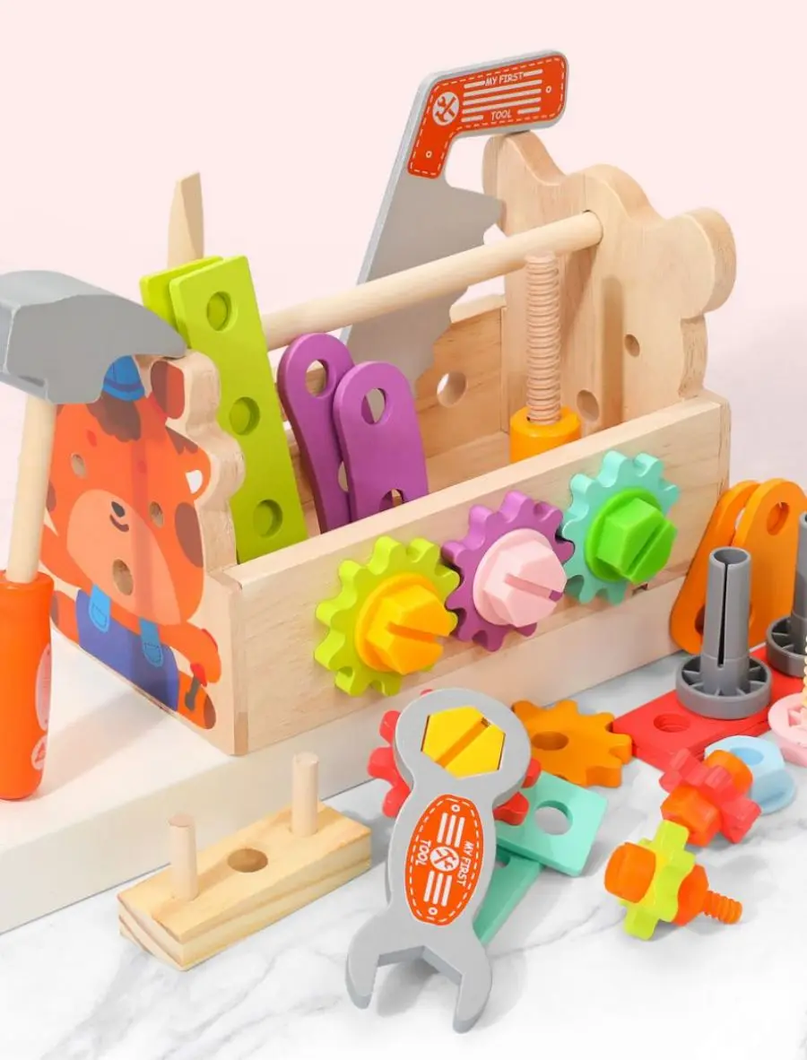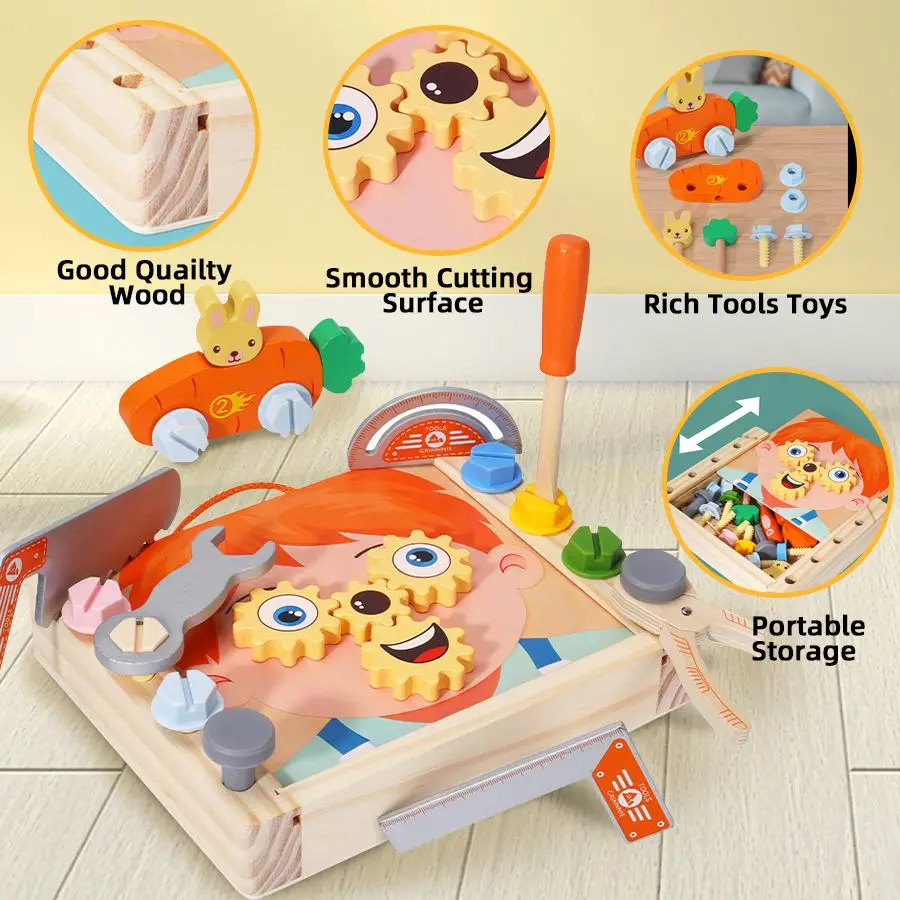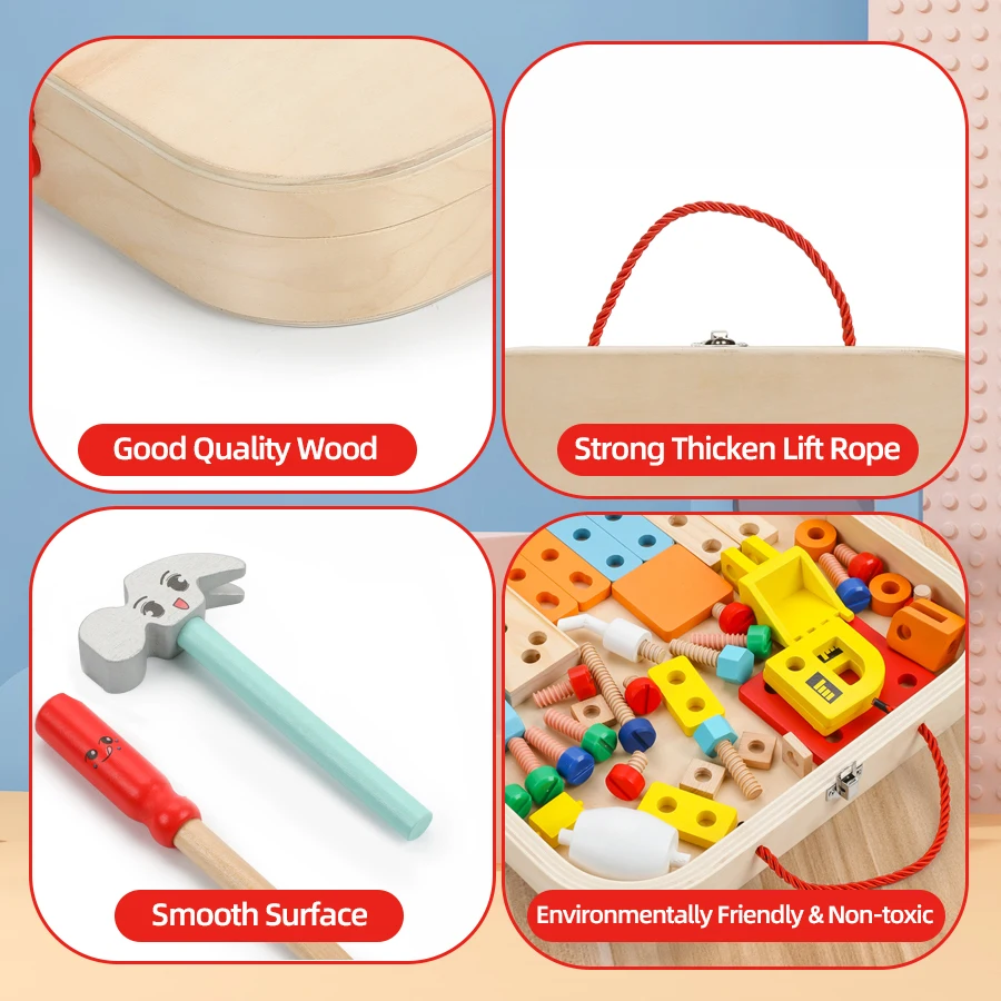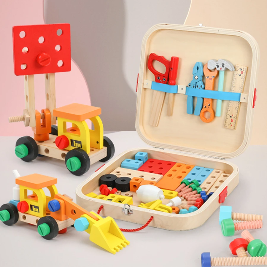 Children’s Wooden Toolbox Montessori Educational Toys Nuts Screws Simulated Carpenter Assembly Repair Tools Creative Play Set