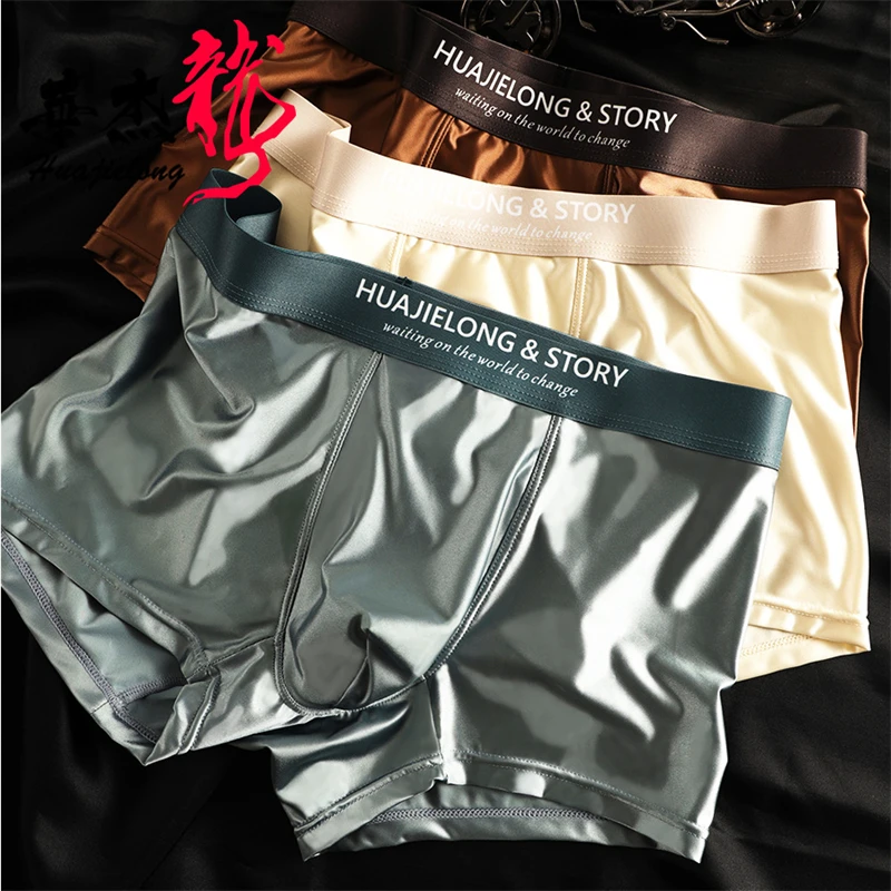Choice boxers hombre Ice silk man underwear solid color satin sexy tоy mens boxer plus size breathable ropa hombre shorts 4XL