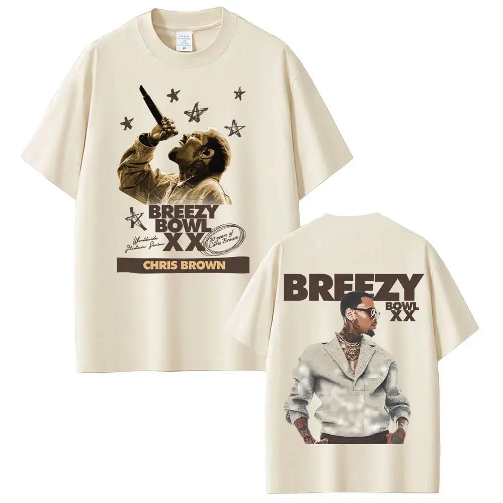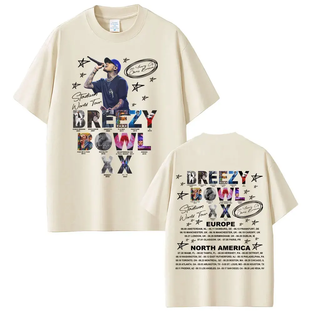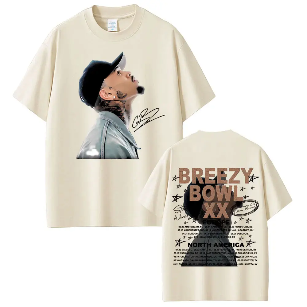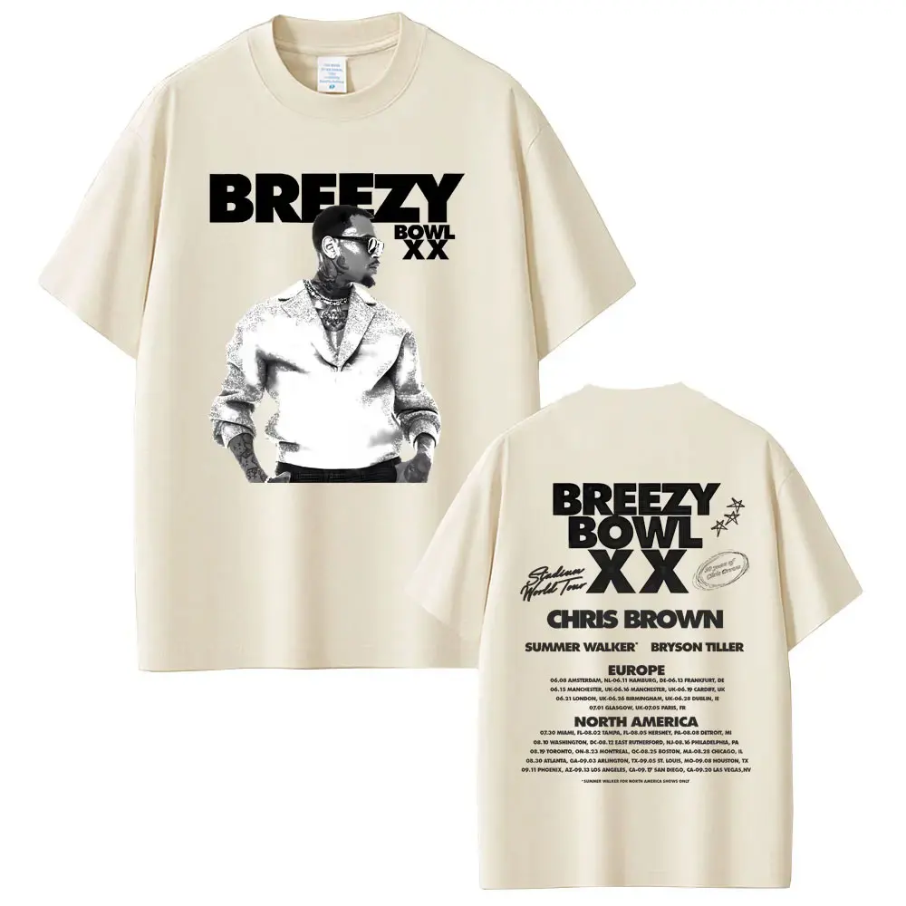Chris Brown Graphic T-shirt Breezy Bowl XX Tour 2025 T Shirts Men Women Fashion Hip Hop Vintage Short Sleeve Oversized T-shirts