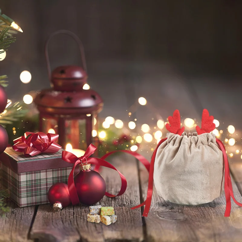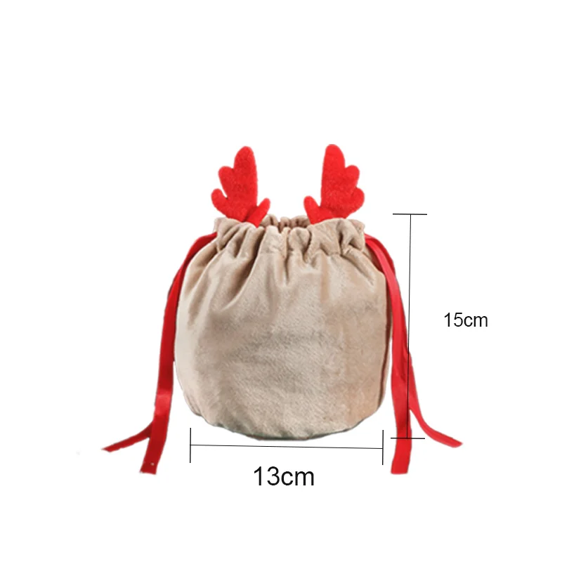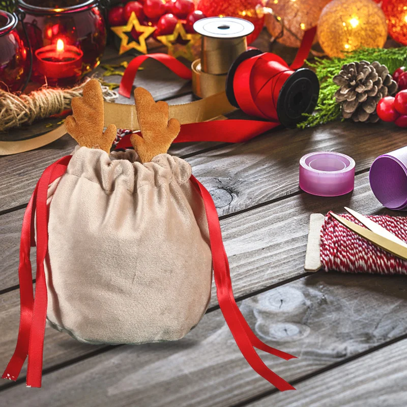 Christmas Antlers Bags Velvet Draw String Candy Bags Bunny Gift Packing Bags Dropshipping Bags Party Decoration 2023 Navidad