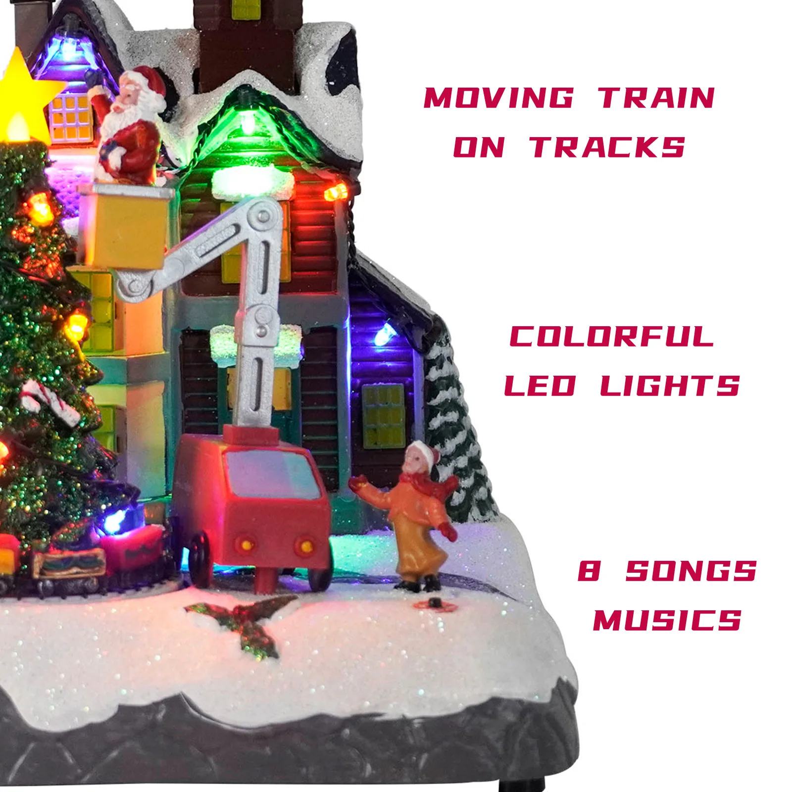 Rotatable Christmas Glowing Snow House Figurine Music Villages Sculpture for Home Bar Shop Decoration Gift
