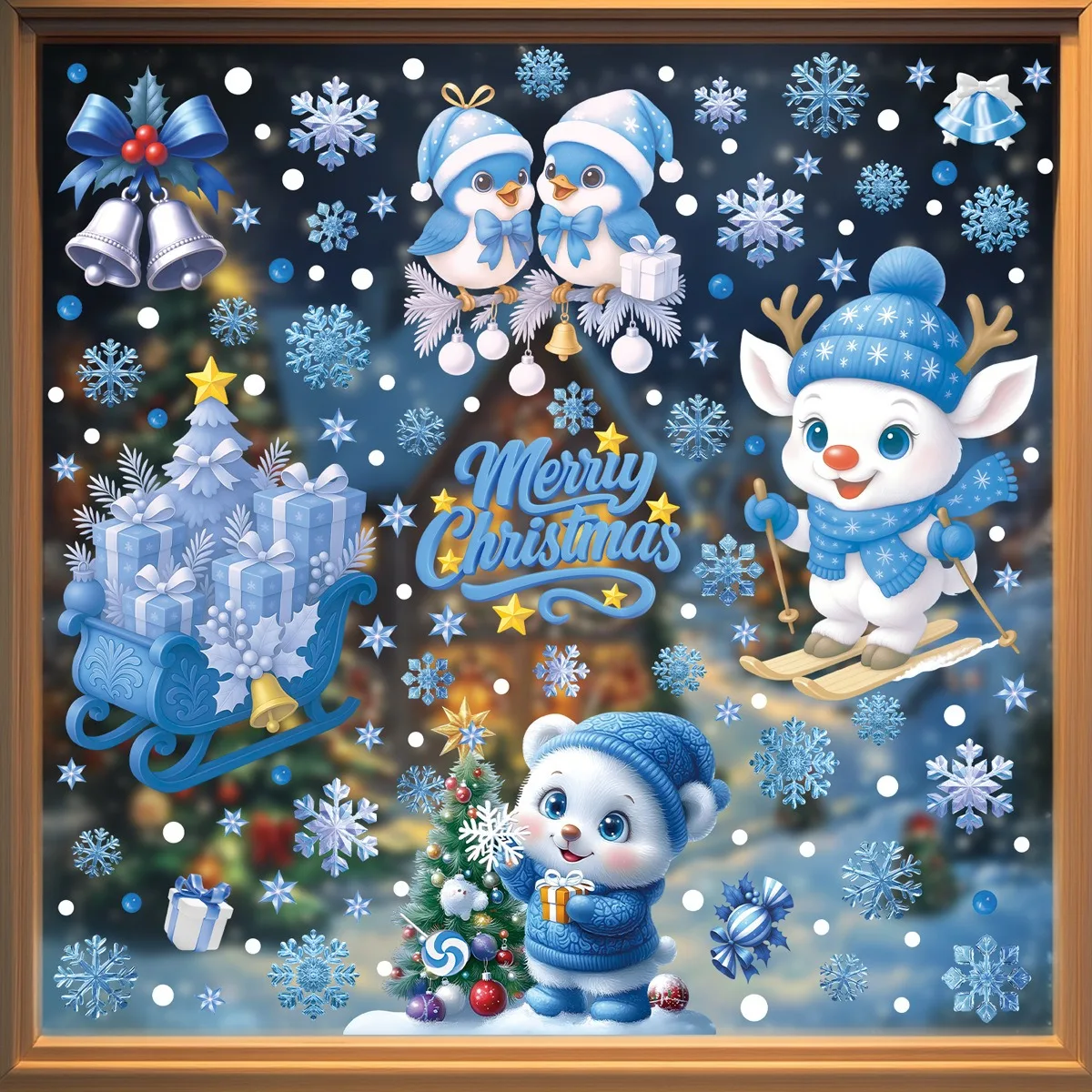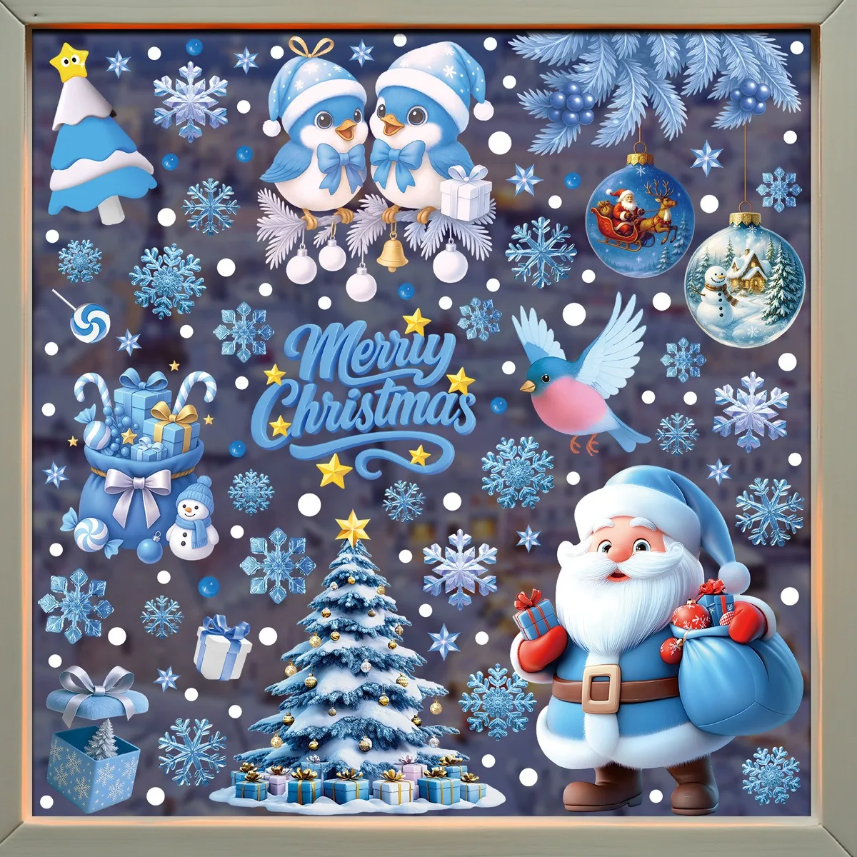 Christmas Mirror Stickers Winter Snowman Snowflake Santa Claus Elk Window Glass Static Stickers New Year Merry Christmas Decor