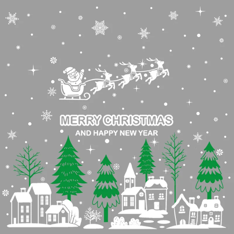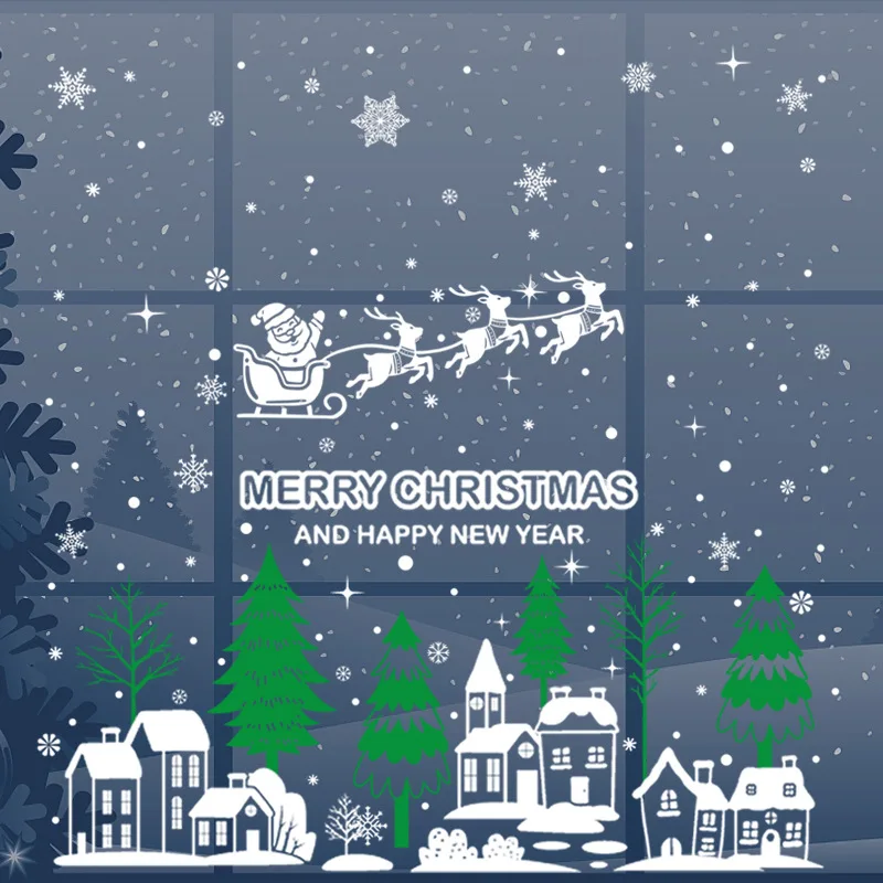 Christmas Santa Claus Elk Snowflakes Glass window Stickers Merry Christmas Decorations For Home Xmas Ornaments Happy New Year