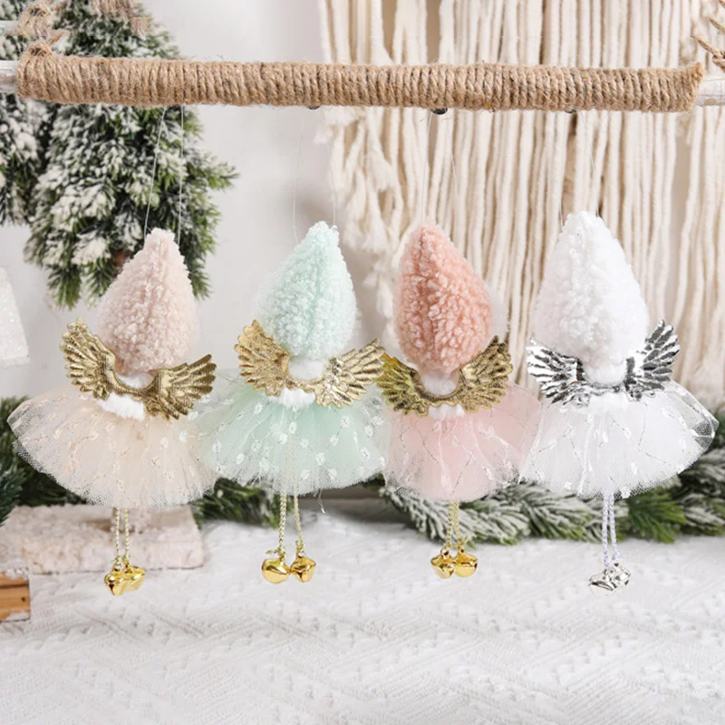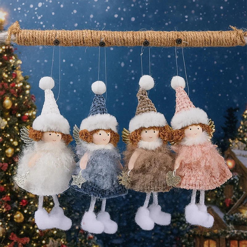 Christmas Tree Decoration Set Plush Girl Christmas Golden Ornaments Angel Xmas Party Keychain Santa Claus Snowman Hanging Decor
