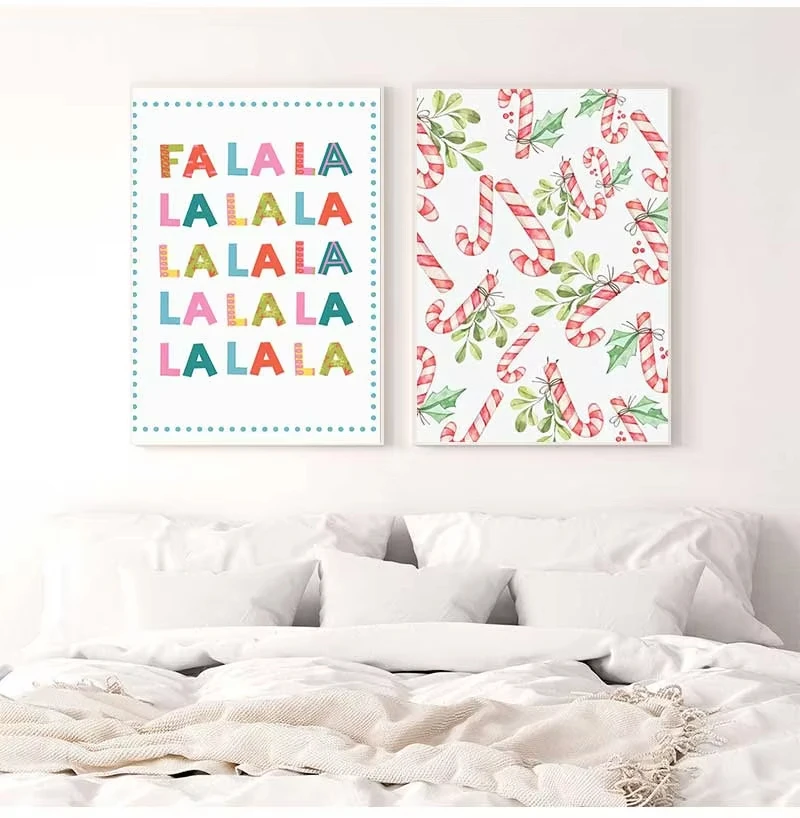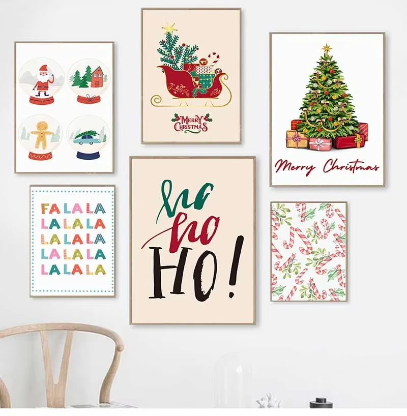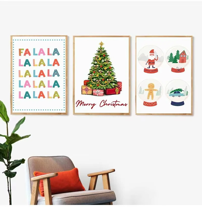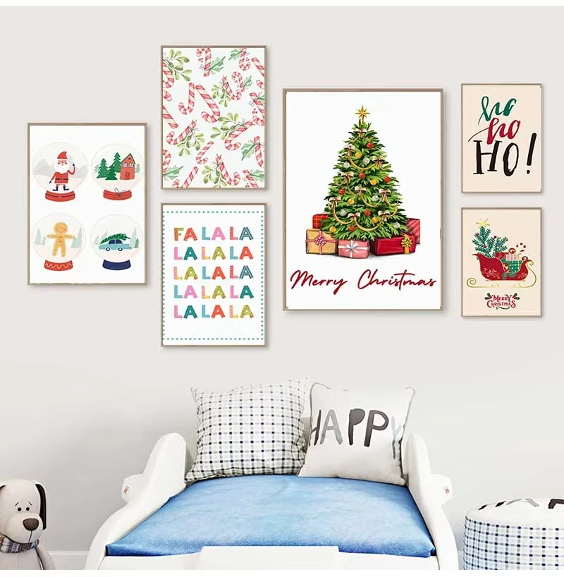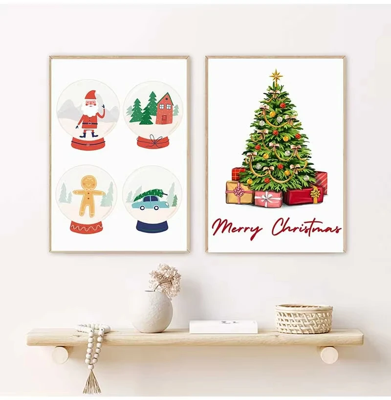 Christmas Tree Gift Santa Nursery Festival Posters Prints Holiday Canvas Painting Wall Art Pictures Kids Room Home Decor