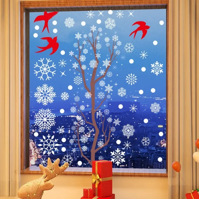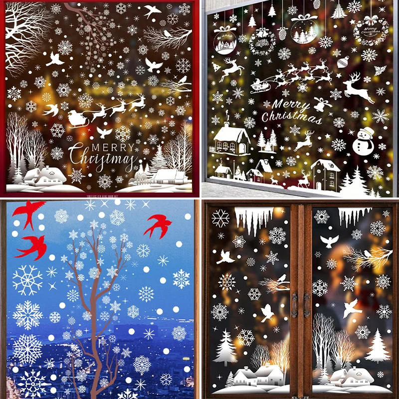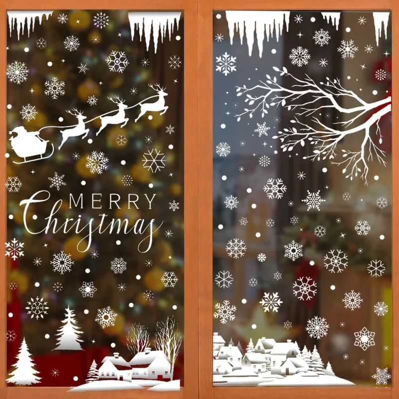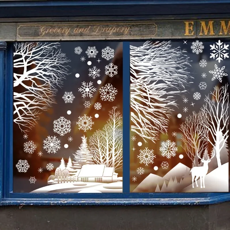 Christmas Window Stickers PVC Static Sticker Elk Snowflake Xmas Tree Glass Window Film for Shopping Mall Home Decoration Decal