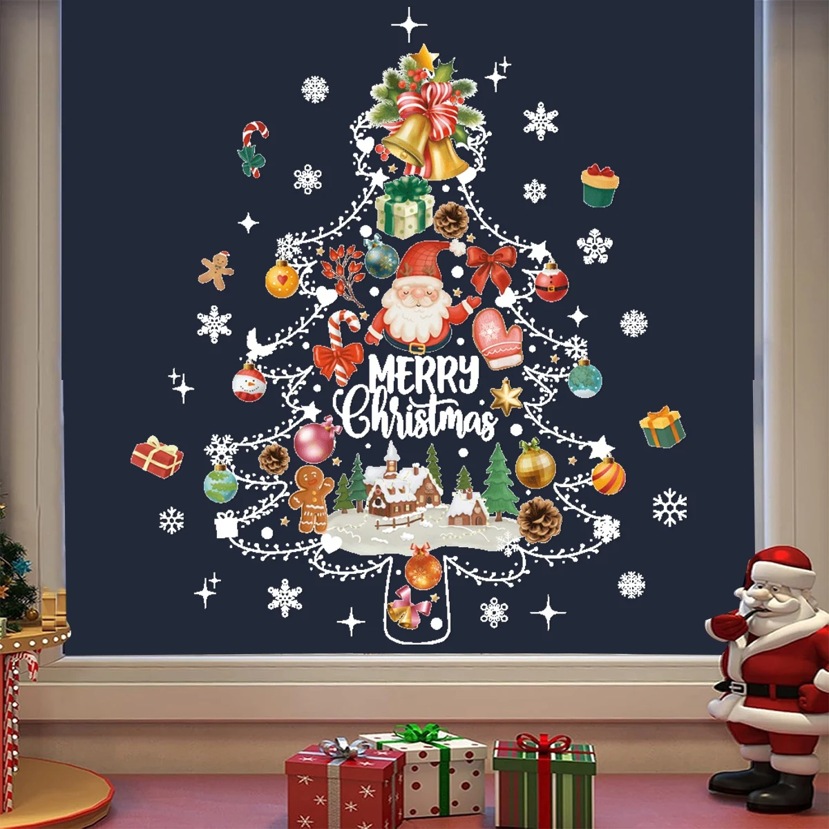 Christmas Window Stickers Xmas Designs Label Sticker for Windows Store Displays Mall Glass Window Display Xmas Ornaments Navidad