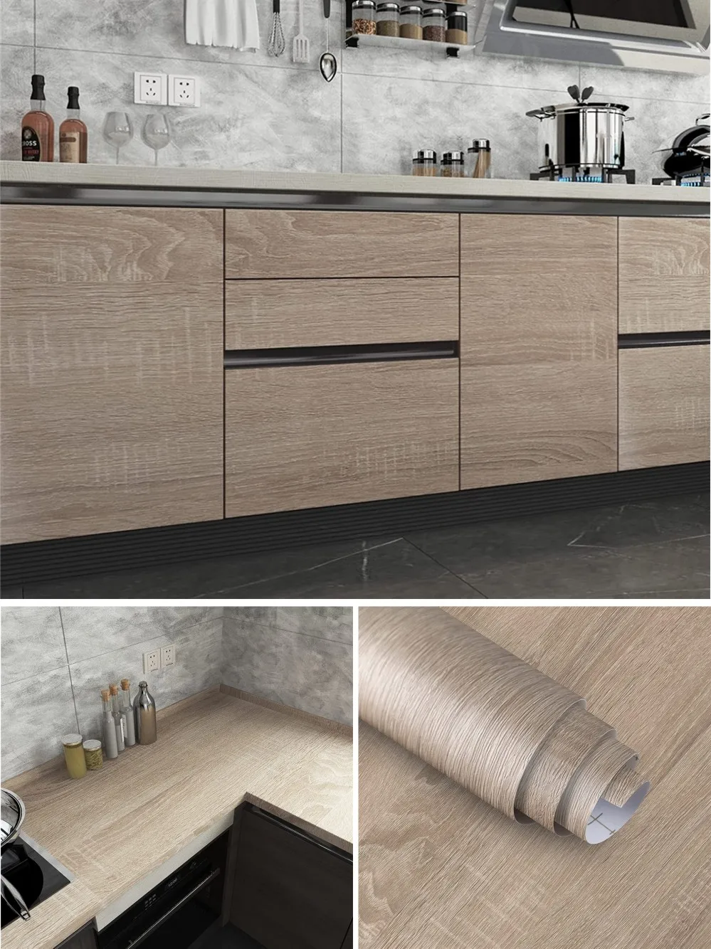 PVC Waterproof Removable Wood Grain Stickers Self-Adhesive Wallpaper Wardrobe Cabinet Table Furniture Renovation Decor