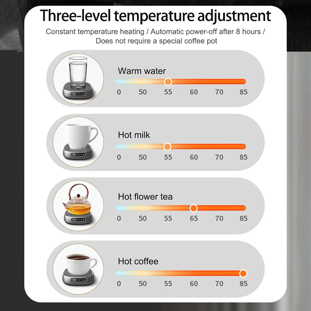 SUITABLE FOR MOST CUPS: This heaters is suitable for different types of coffee cups, from glass and ceramic to stainless steel, to meet your different needs. For best results, we recommend using a glass or stainless steel mug with a flat bottom.
