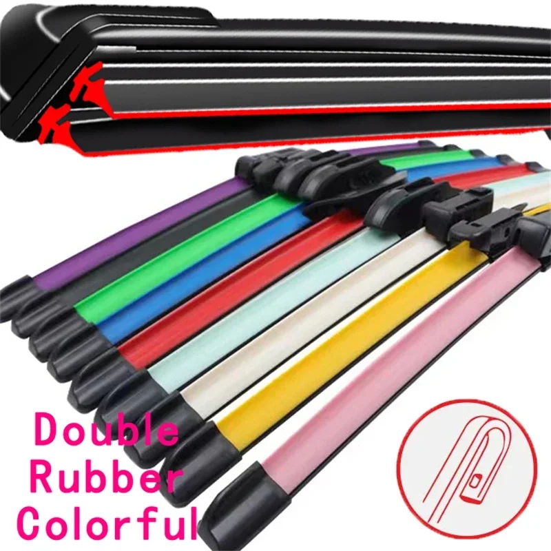 Colorful U J Hook Car Windshield Wiper blades Universal Soft Double layer Rubber Frameless Bracketless 16″ 19″ 20″ 22″ 24″26″