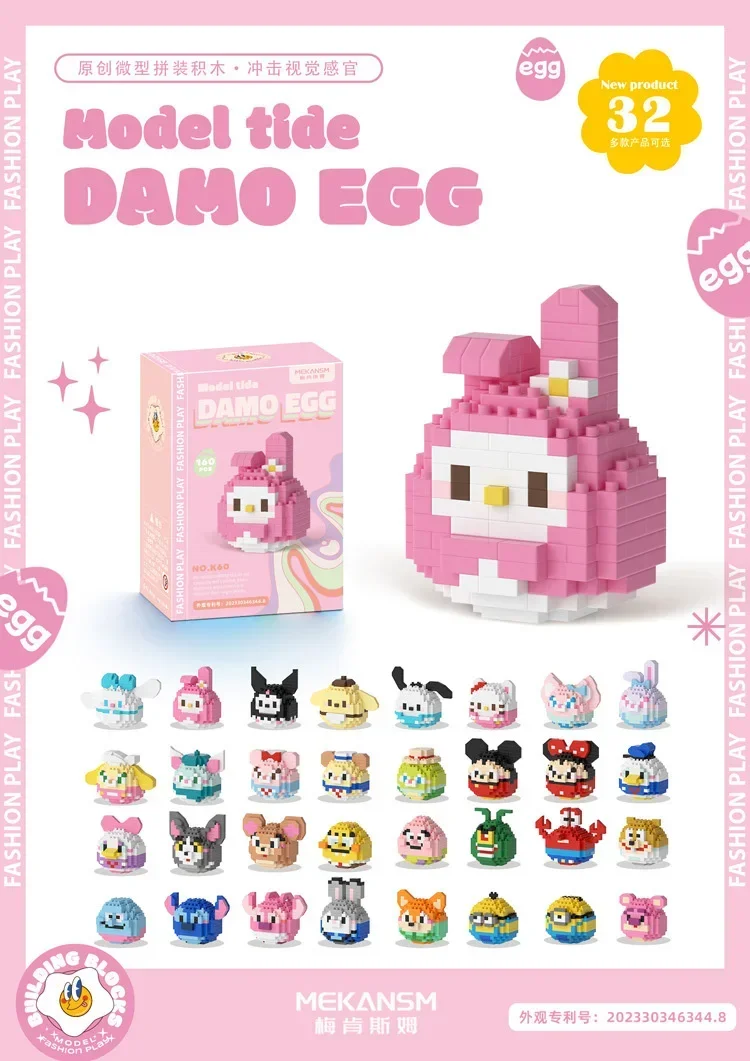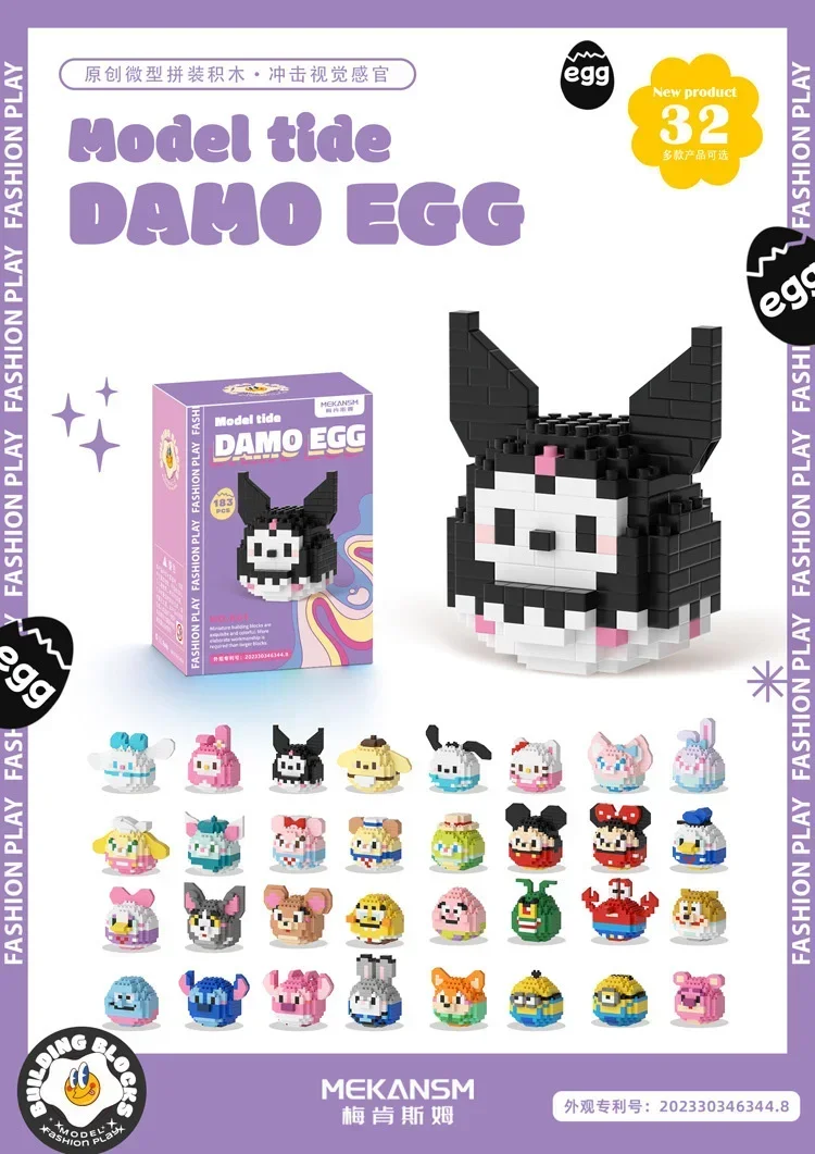 Compatible LEGO Microparticle Sanrio Blocks Cartoon Dolls Assembled Blocks Tamagotchi Dog Kurumi Blocks Children’s Toys Ornament