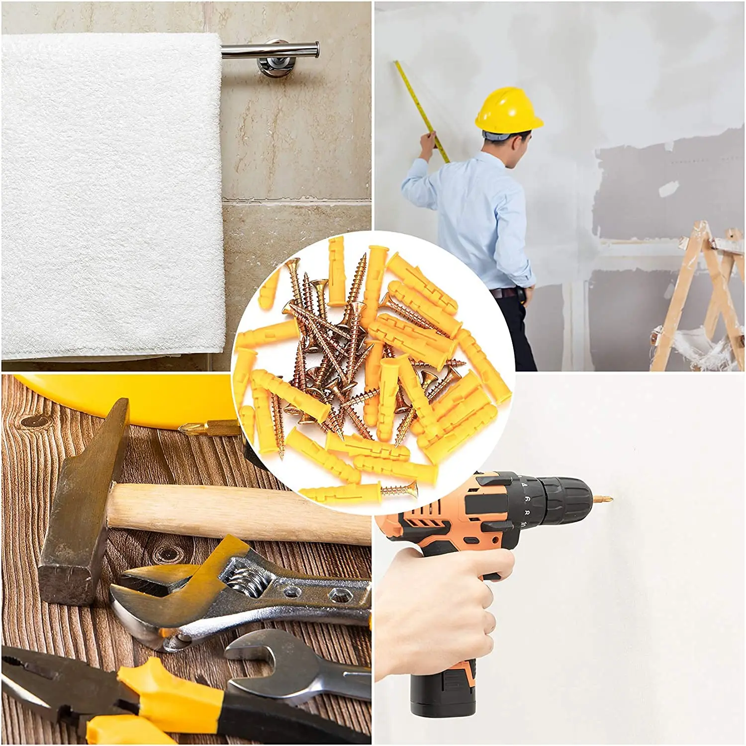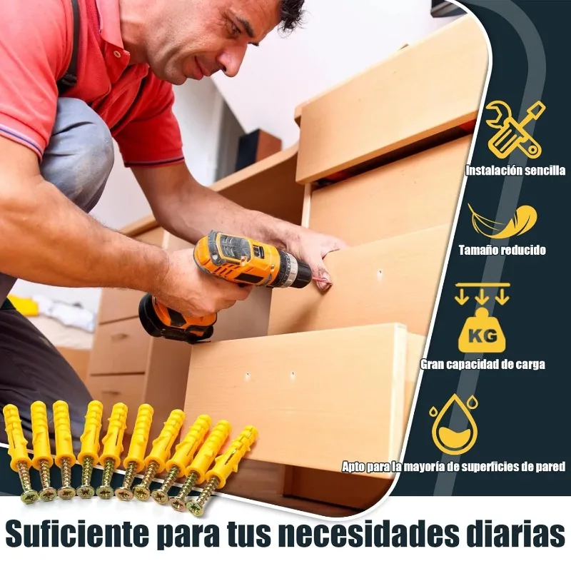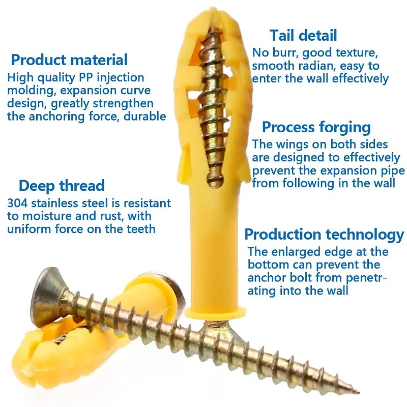 5 reviews for Concrete Drywall Anchor Screw Kit Plastic Expansion Tubes Fixing Wall Anchors Plug Self-Tapping Flat Head Screws Bolt Fasteners