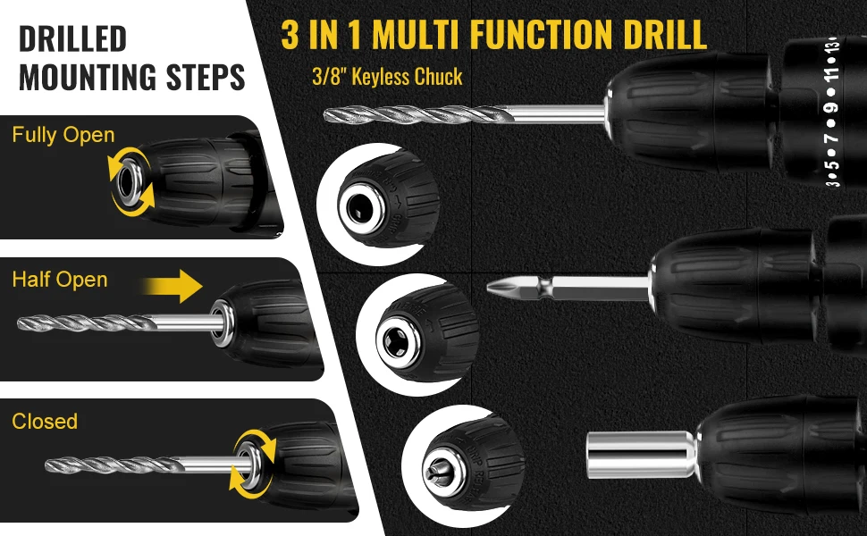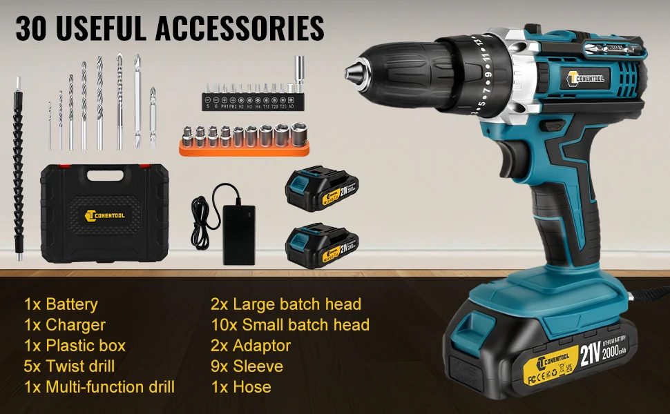 It includes 30 accessories such as twist drills, sleeves, batch heads, adapters, etc., which are suitable for drilling, screw tightening, precision operation and other needs, saving the cost of purchasing additional accessories.