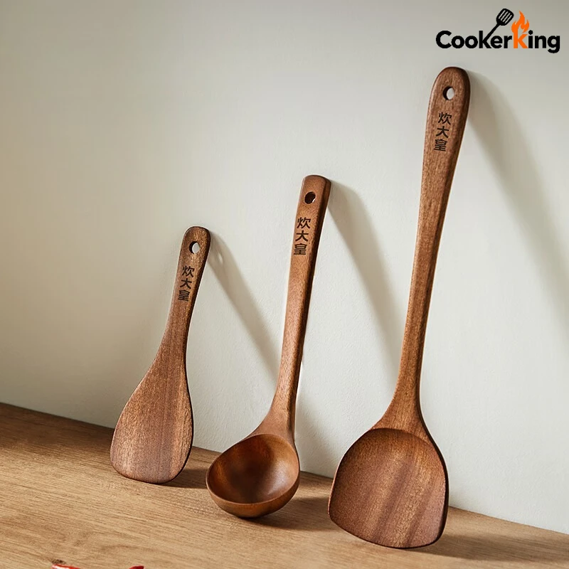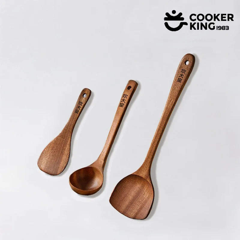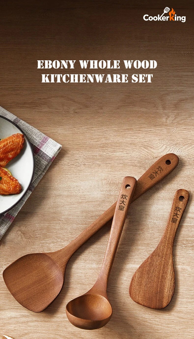 COOKER KING 3-IN-1 Cooking Tool Set Ebony Spatula and Spoon for Family Kitchen Kitchenware Exquisite Kitchen Gift To Friend