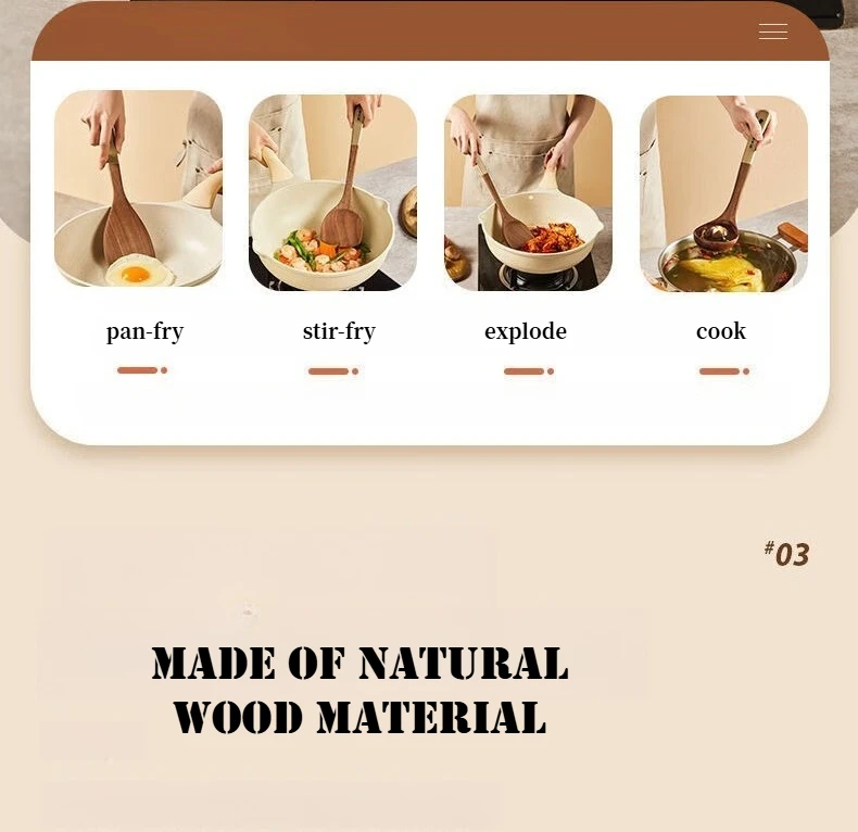 4. Not easy to stick : The natural wood properties make it difficult for ingredients to stick to the surface of tools, making cleaning more convenient.