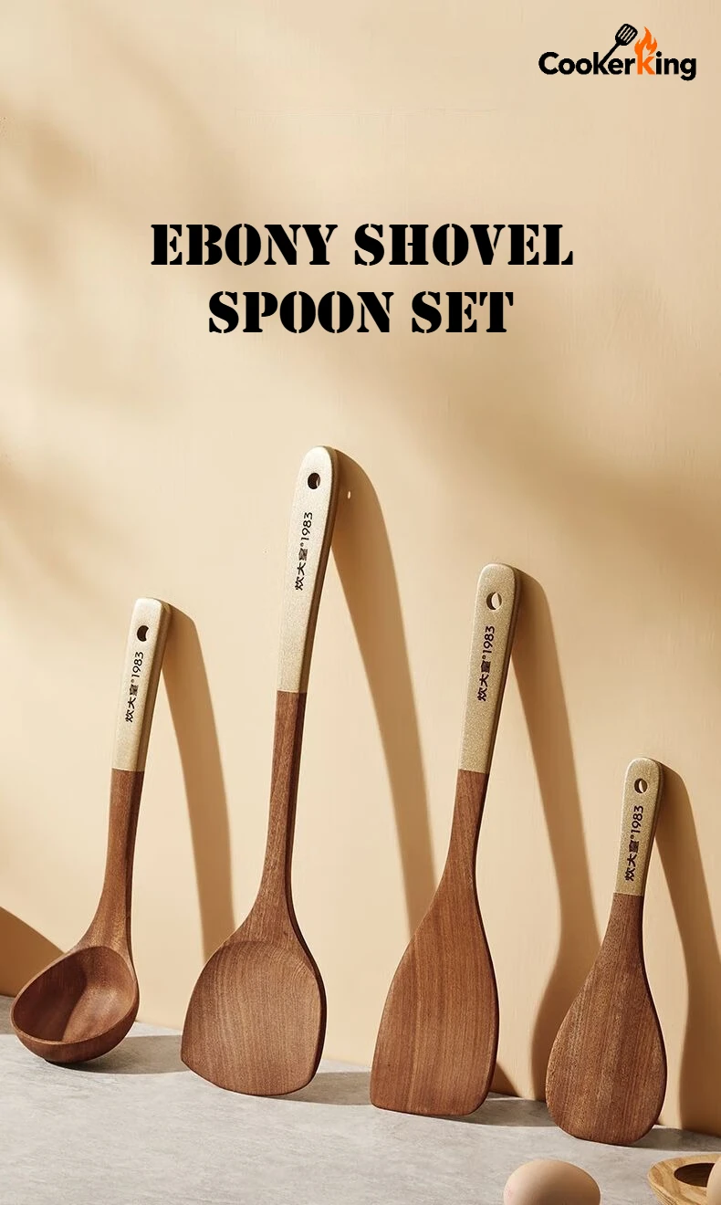 COOKER KING 4 in1 Cooking Tool Set Ebony Spatula and Spoon for Kitchen Use Kitchenware Exquisite Kitchen Tools Gift To Family
