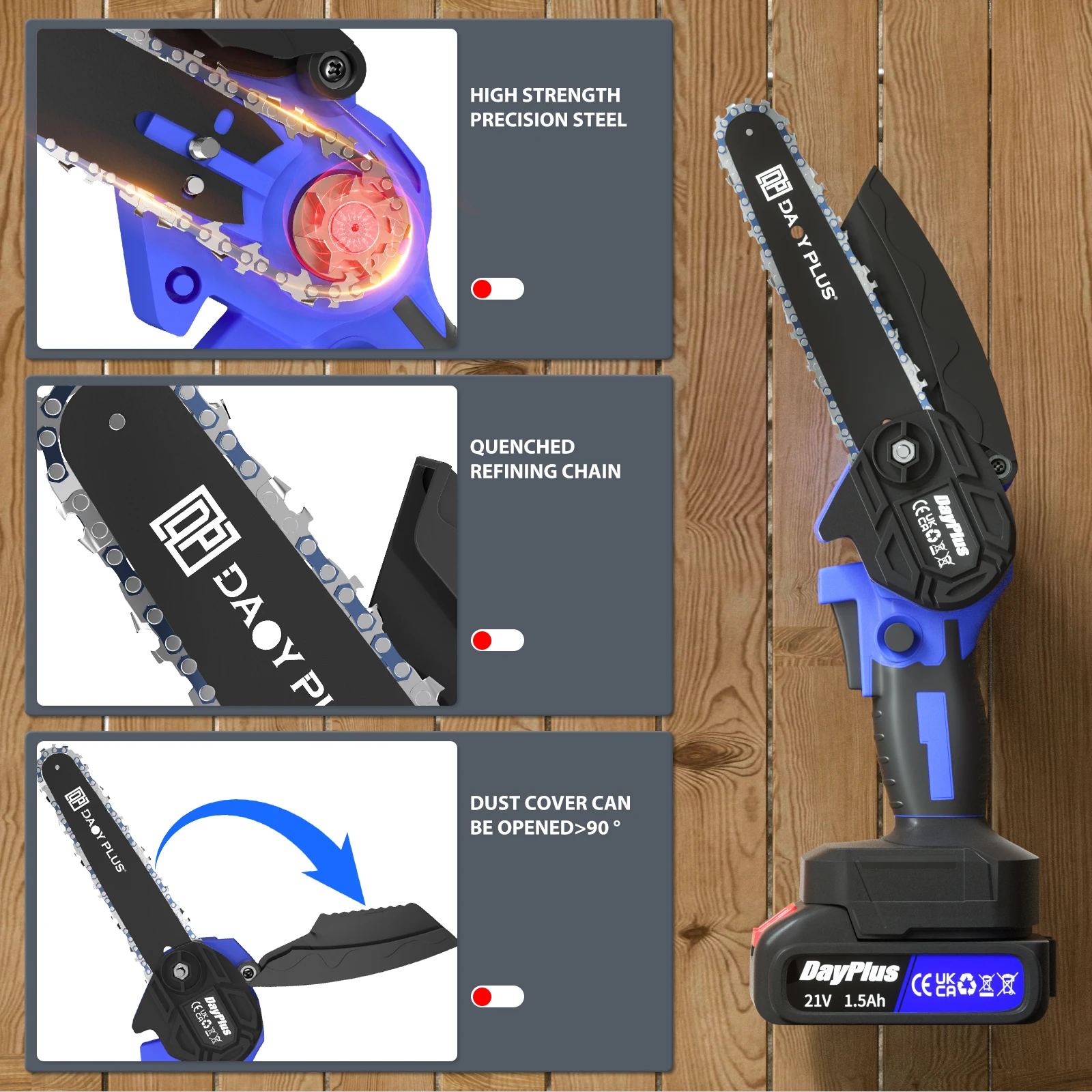 ⭐Lightweight Mini Chainsaw: The chain saw weights only 2.4lbs with comfortable rubber-coated grip, and you would not feel tired even holding it for long time during work. This wireless electric one-hand chainsaw is very suitable for wood cutting, tree pruning trimming and other gardening work.