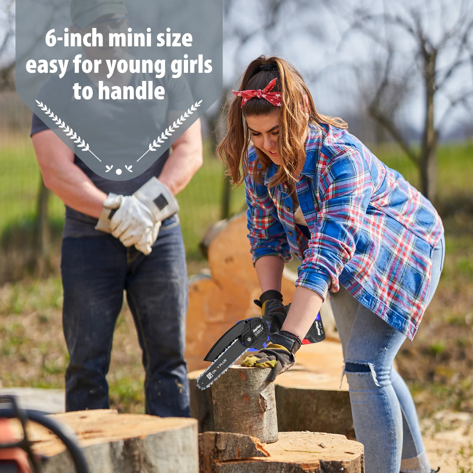 Cordless Chainsaw 6 Inch, Battery Powered Mini Chainsaw, Portable Handheld Chainsaw for Gardening Pruning, 2 Batteries