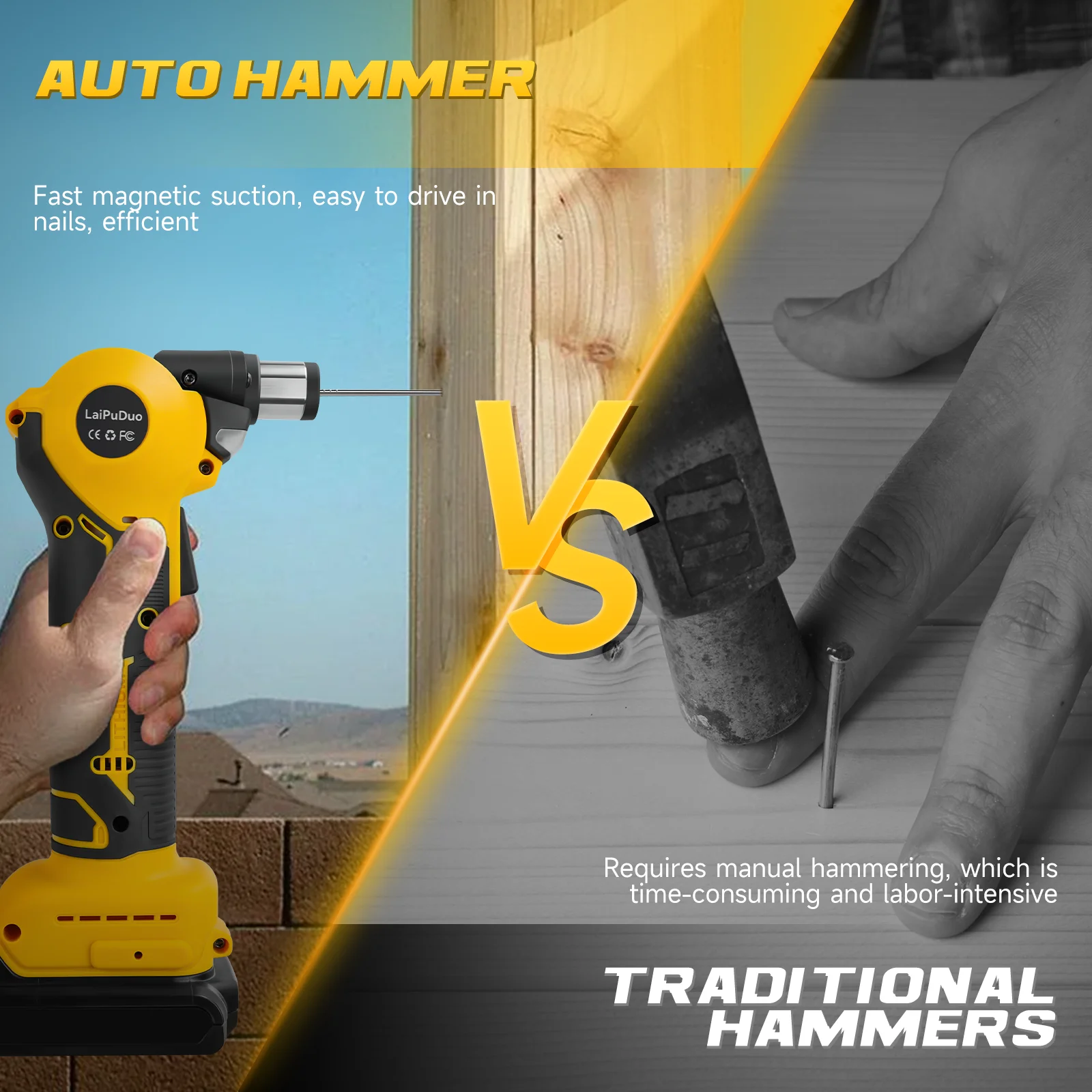 【Joist Hanger Nail Gun】—The LaiPuDuo nail gun is equipped with a magnetic clamp that can hold 3.5-inch nails. This tool is easy to use with one hand, especially in narrow or difficult to reach areas such as cabinets. The magnetic properties of the chuck simplify the nailing process, streamline the workflow, and improve convenience.