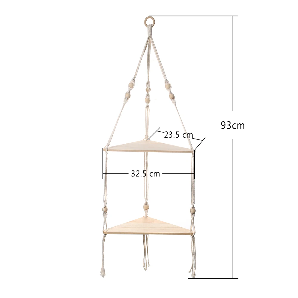Macrame Corner Shelf Wall Hanging – 2 Tier White Corner Floating Shelves Boho Wall Decor, Rustic Wooden Plant Shelf Storage Rack for Bedroom Living Room Bathroom