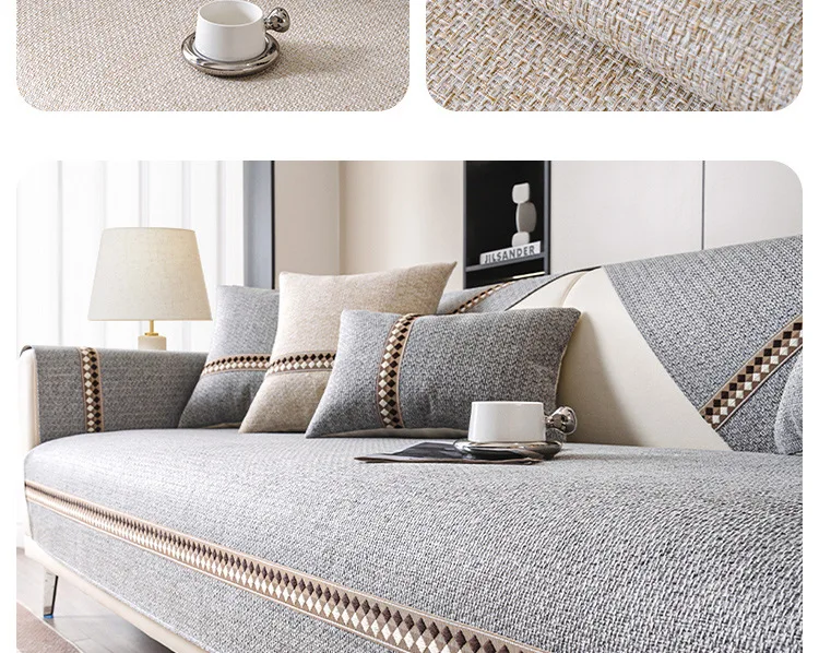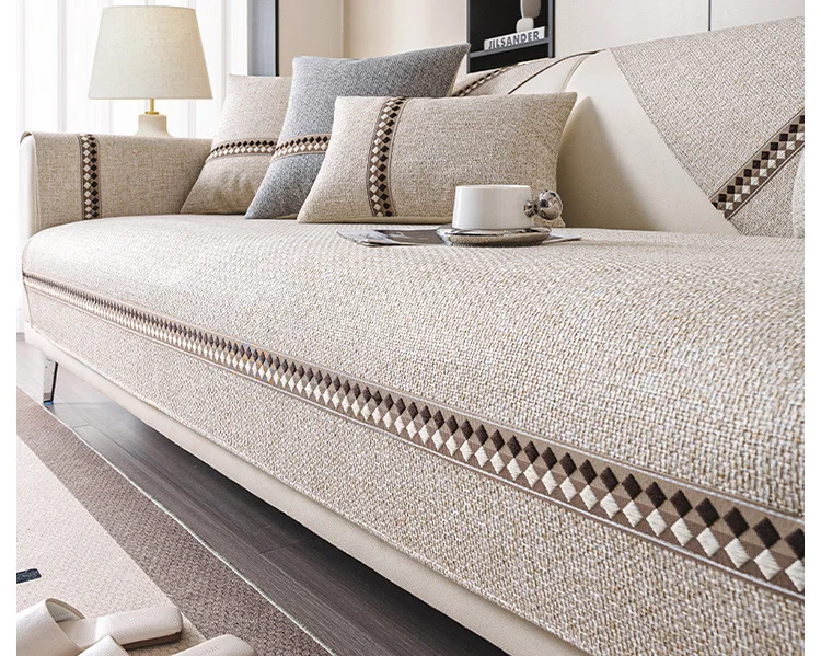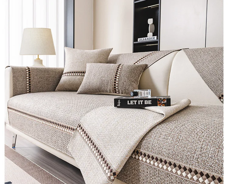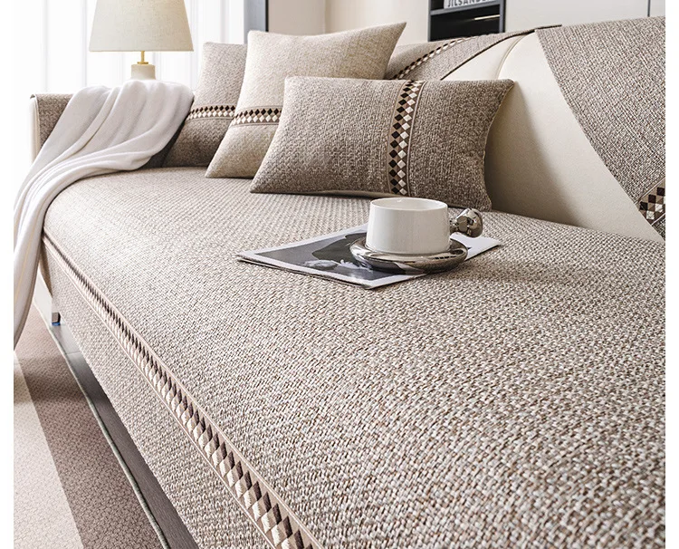 Cotton and Linen Sofa Cover Four Seasons Universal Sofas Pad Solid Color Sofa Mat for Living Room Anti-Slip Couch Cushion Home