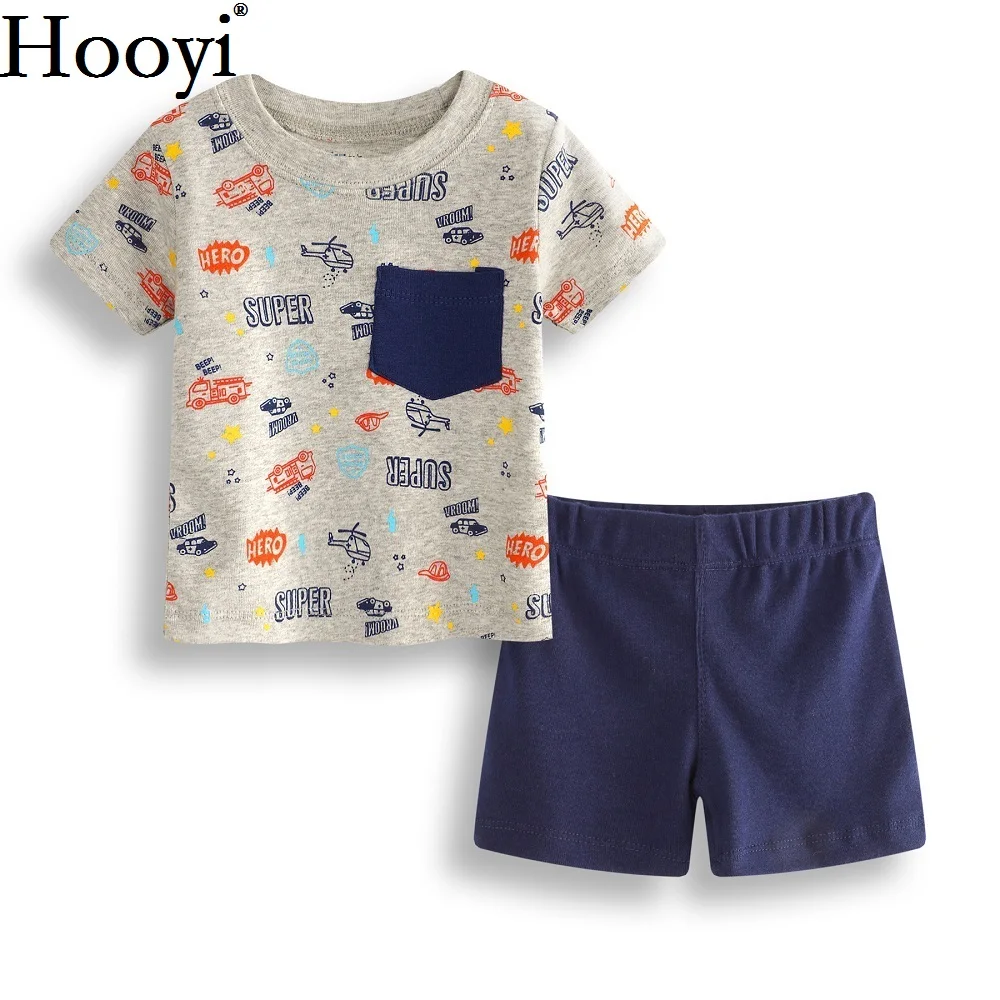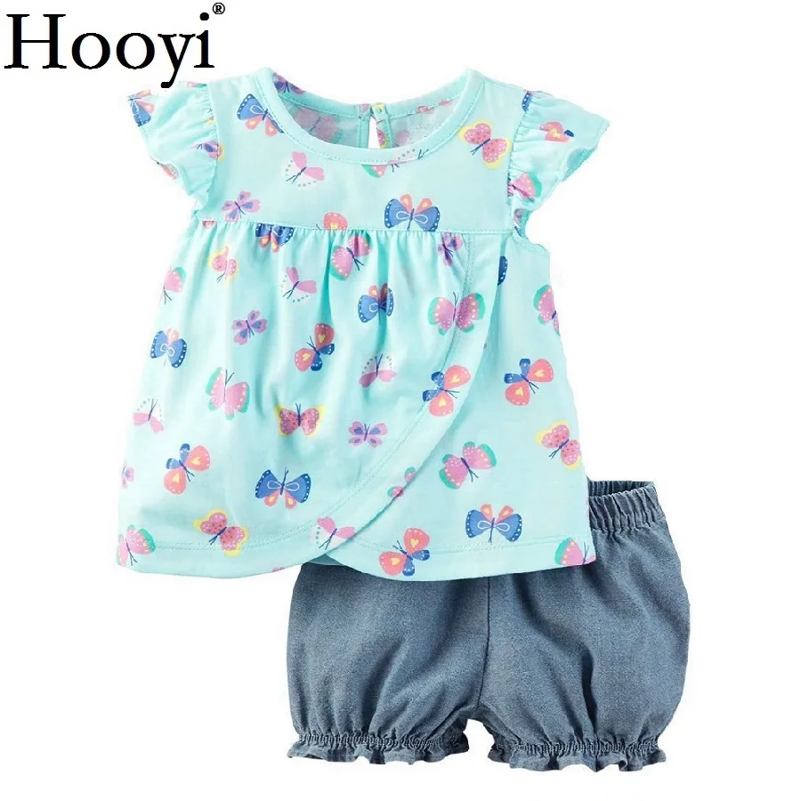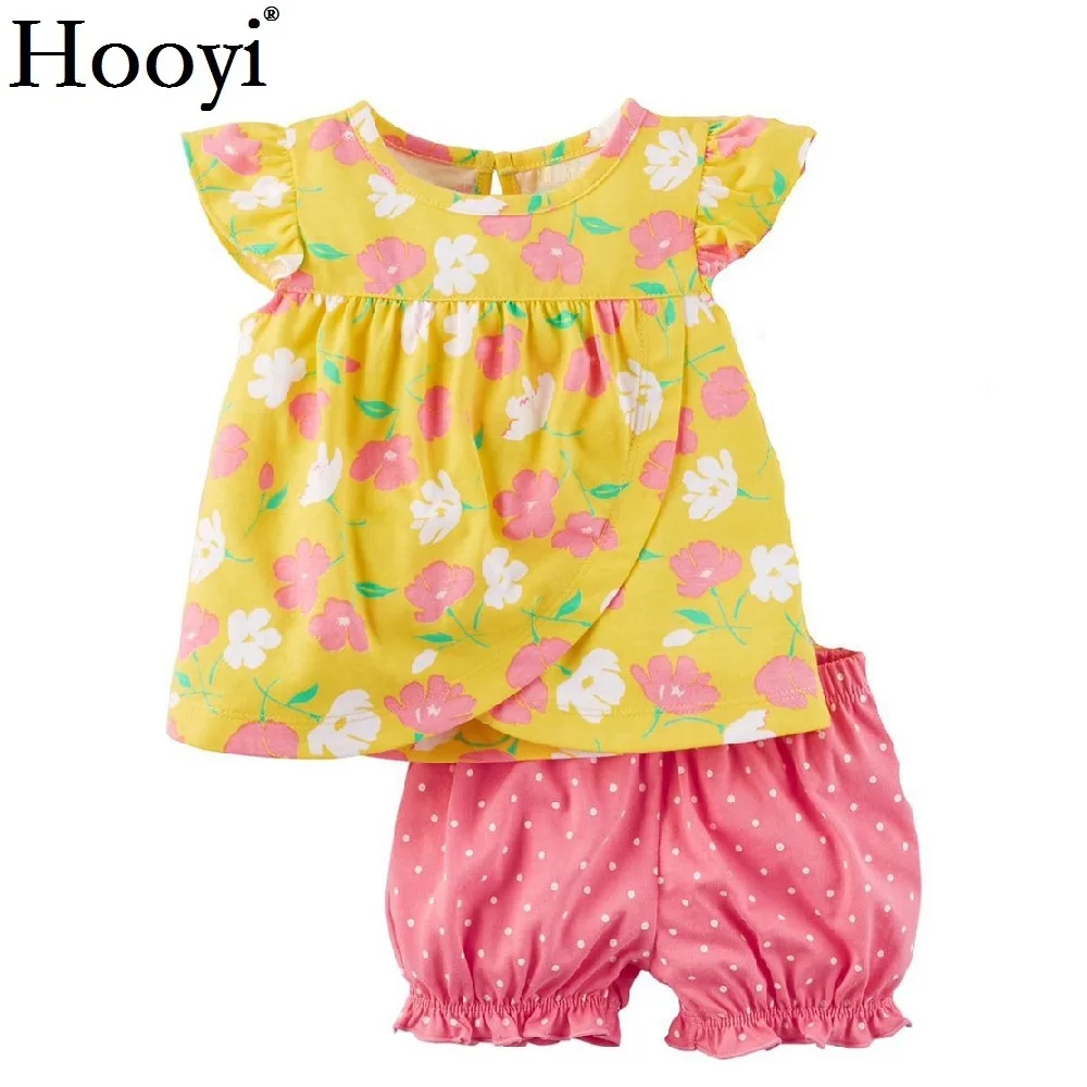 Hooyi 2019 Newest Baby Girls Clothes Sets Summer Children 2-Pieces Suit Newborn T-Shirts Shorts Pant Boys Tank Top 100% Cotton Vest Trouser 2 PCS Suit Outfits Toddler Tracksuits Sport Suit