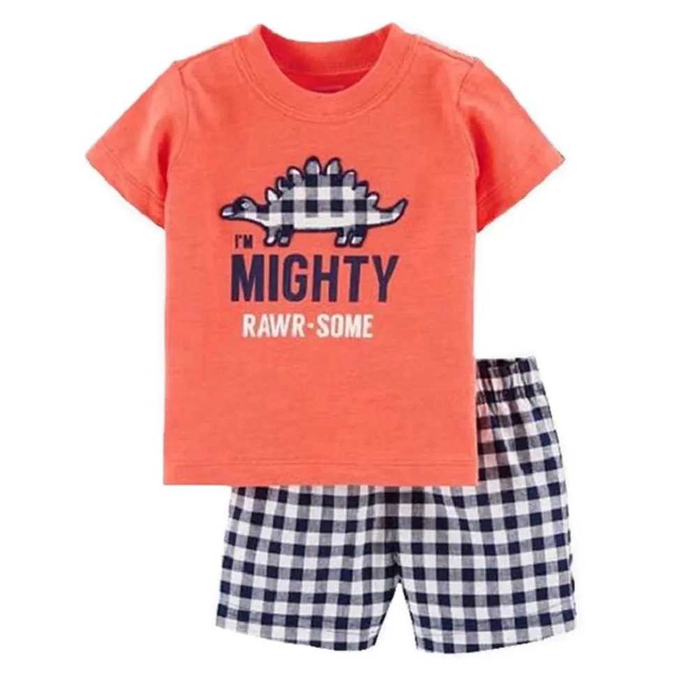 Cotton Little Boy Clothes Suit Dinosaur Baby Tee Shirts Shorts Pant 2-Pieces Outfit Brachiosaurus Dino Costumes Soft 0-2 Year