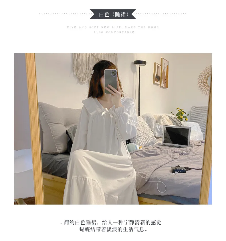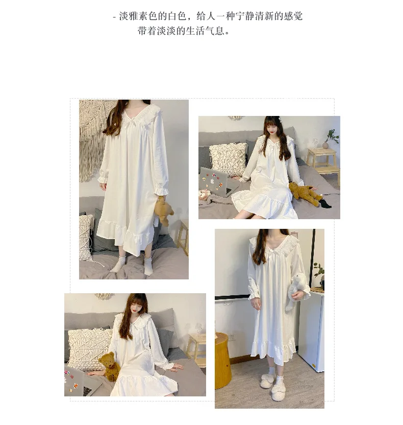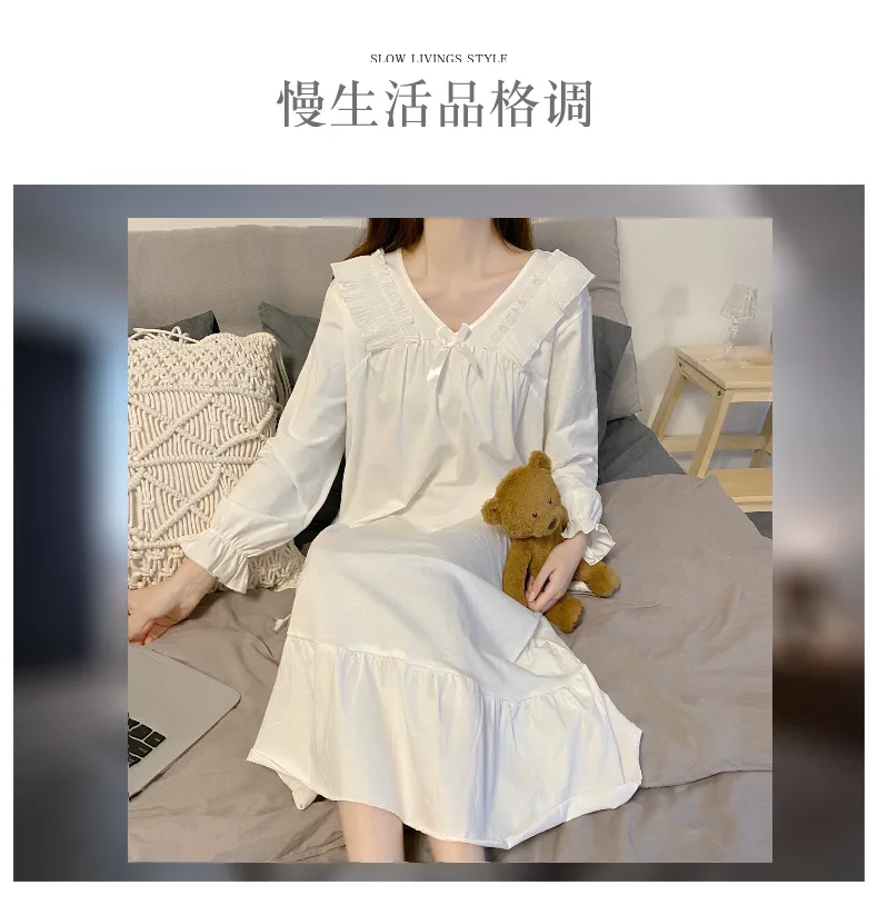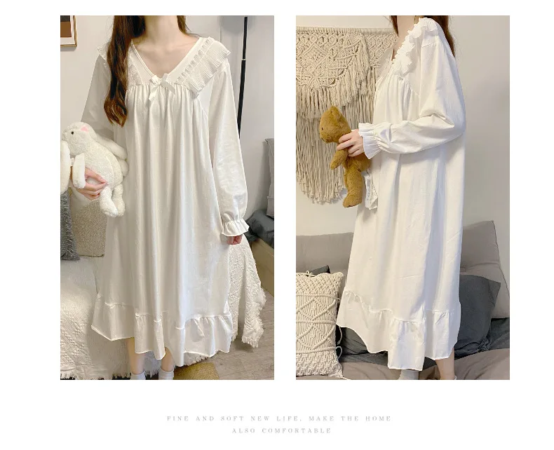 Cotton Nightgowns for Women New Long Sleeve Night Dress Large Size Loose White Nightdress Ladie’s Casual Nightwear Nightshirt