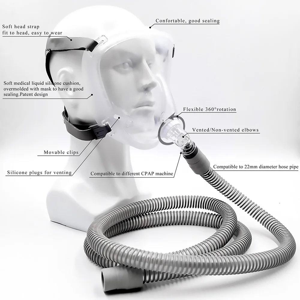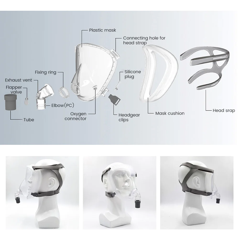 CPAP Full Face Mask Medical Silicon Full Facial Mask Auto BiPAP CPAP Mouth Nasal Mask with Headgear for Sleep Apnea Anti Snoring