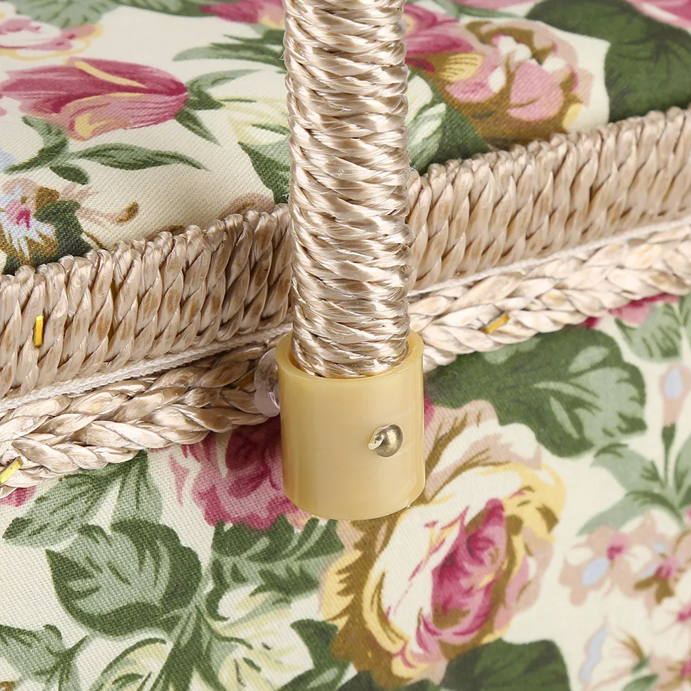 The out layer of storage box is decorated by printed cloth, rural and attractive.