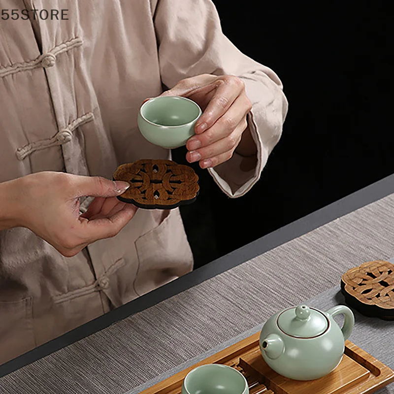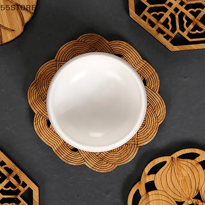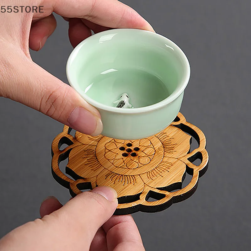 Creative Lotus Flower Drink Coasters Wooden Round Cup Mat Table Mat Tea Coffee Mug Placemat Home Decoration Kitchen Accessories