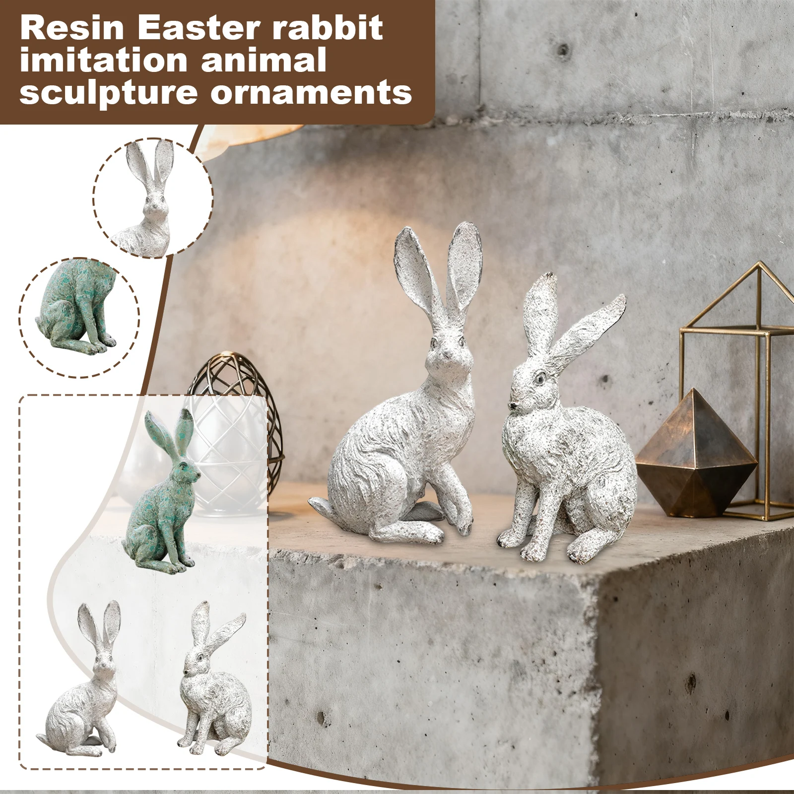 Resin Easter Bunny Simulation Animal Sculpture Ornament Retro Tale Gift