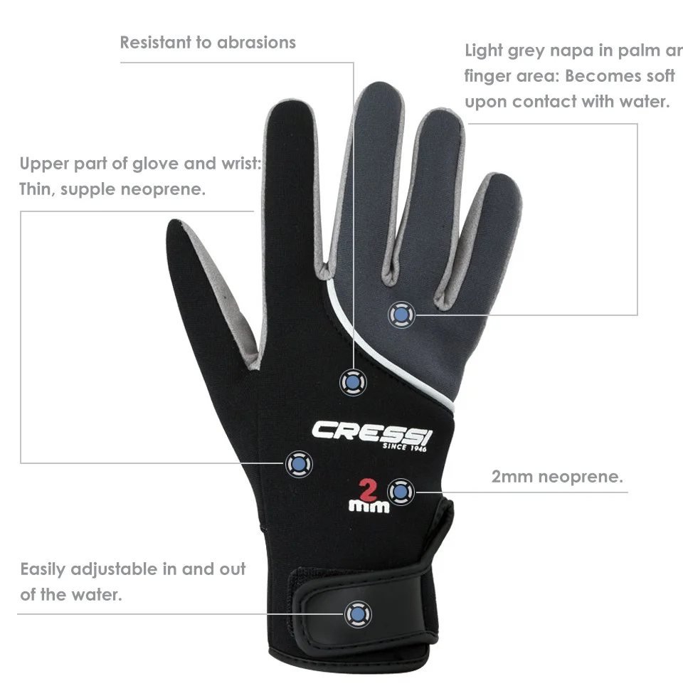 Cressi Tropical 2MM Neoprene Diving Gloves Scuba Diving Snorkeling Five Finger Glove Man and Woman for Adult