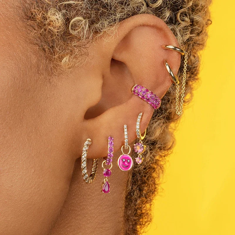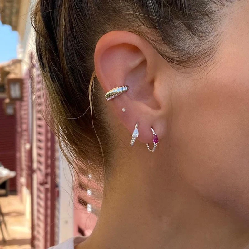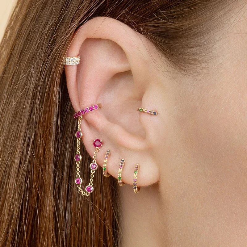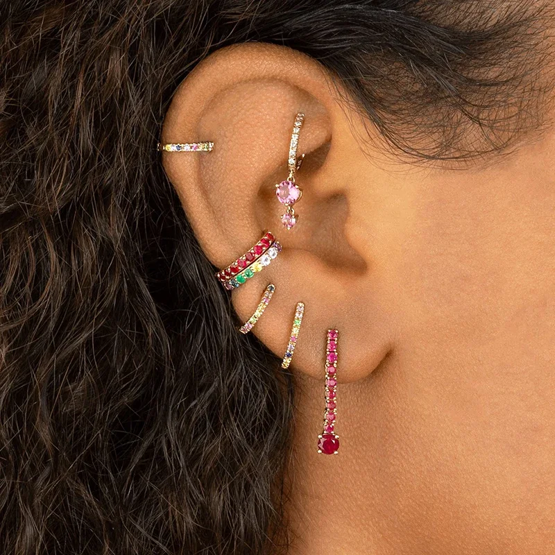 CRMYA Red Zircon Drop Earrings For Women Gold Plated Women’s Wedding Ear Cuffs Hoop Stud Earrings 2022 Jewelry Wholesale
