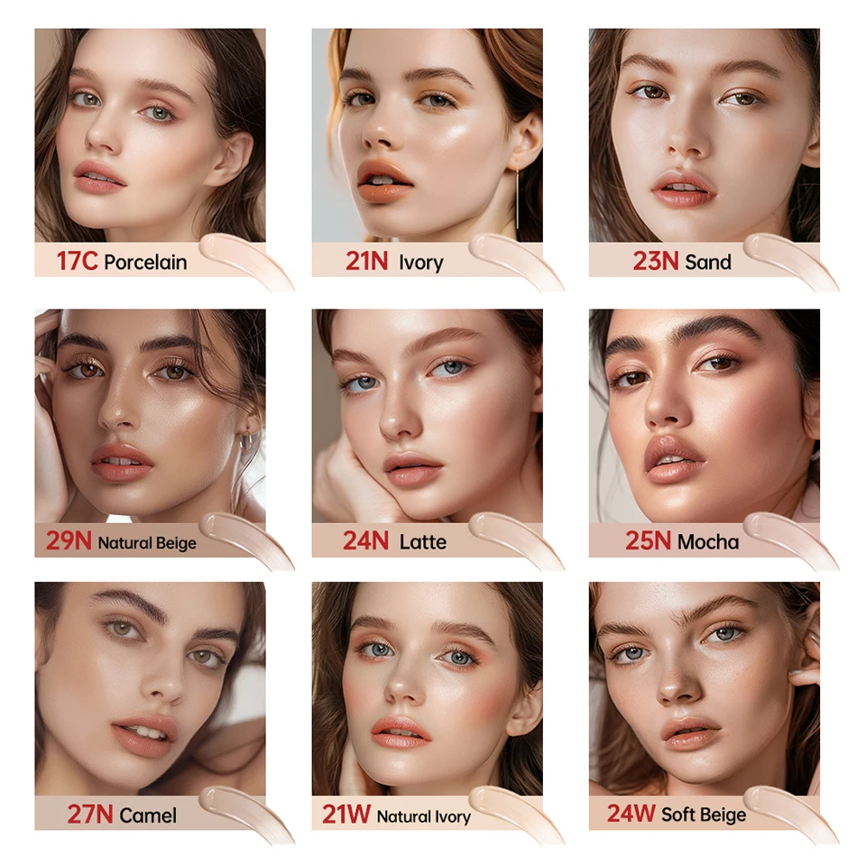 9.Long-lasting Coverage: Provides buildable coverage to cover redness, blemishes and eye bags. Concealing power but not drying, stuck or powdery