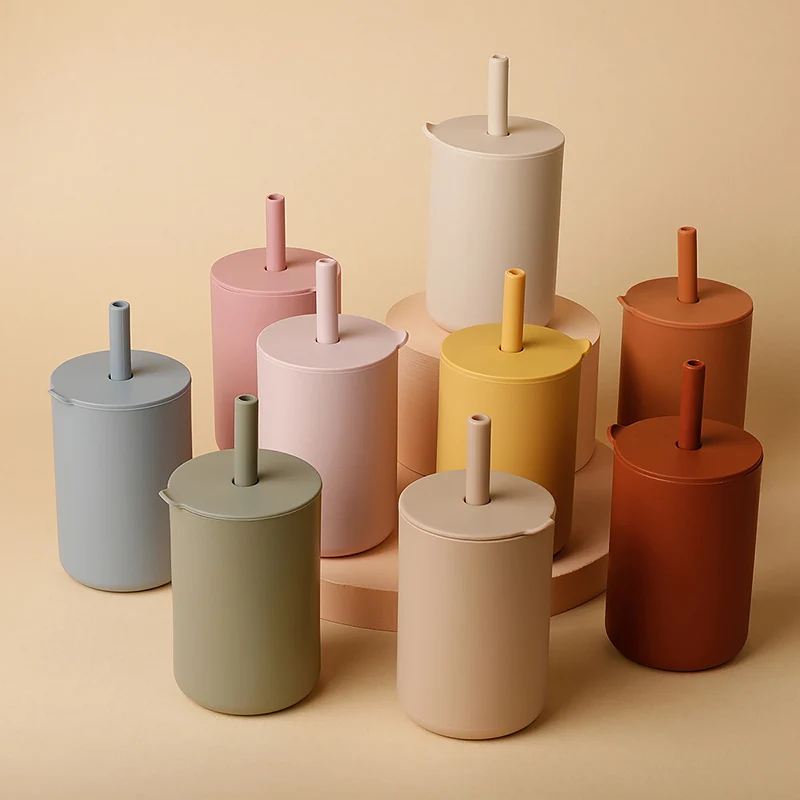 Cute Baby Feeding Straw Cup Baby Cartoon Learning Feeding Cup Food Grade Silicone Toddler Water Bottle Tableware BPA Free