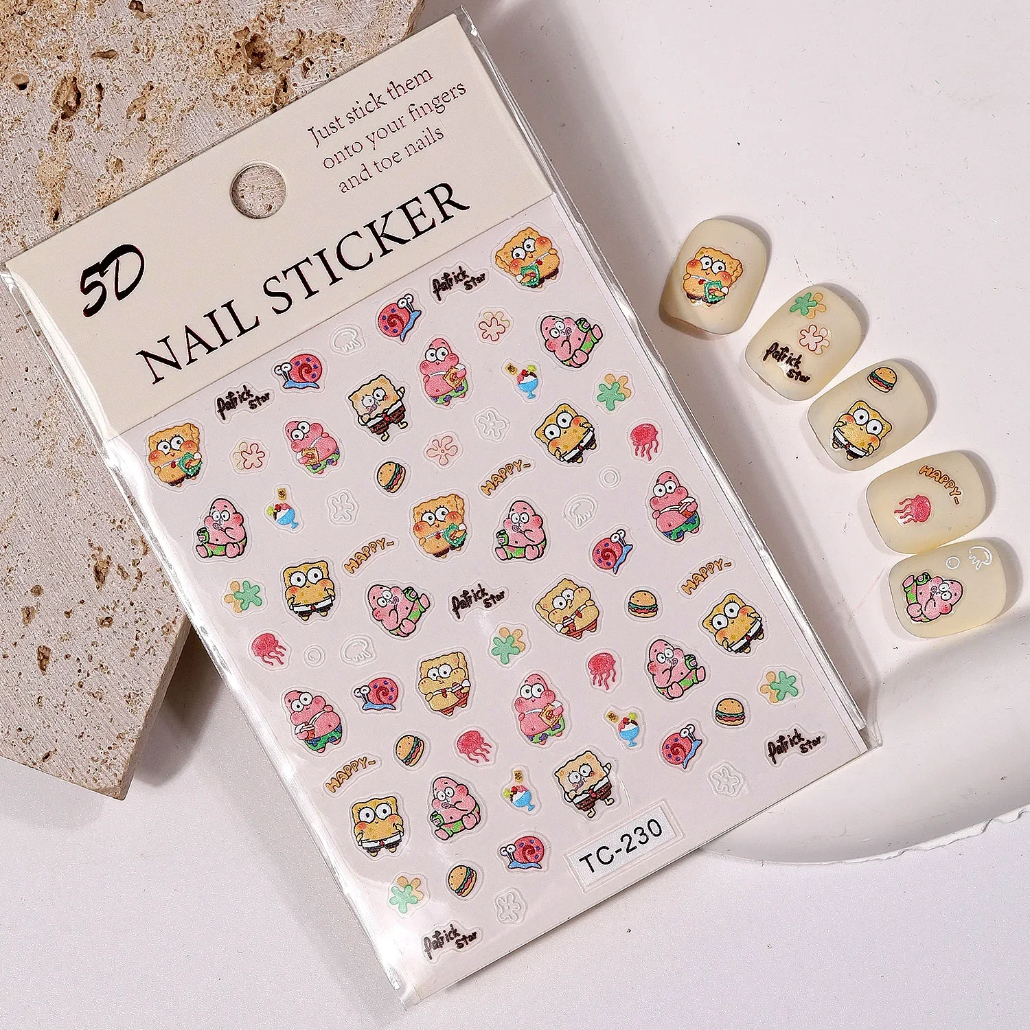 • Cute Cartoon Design :These nail art stickers feature adorable cartoon designs of Doraemon and Spongebob, adding a playful and stylish touch to your nails and mobile phone.
