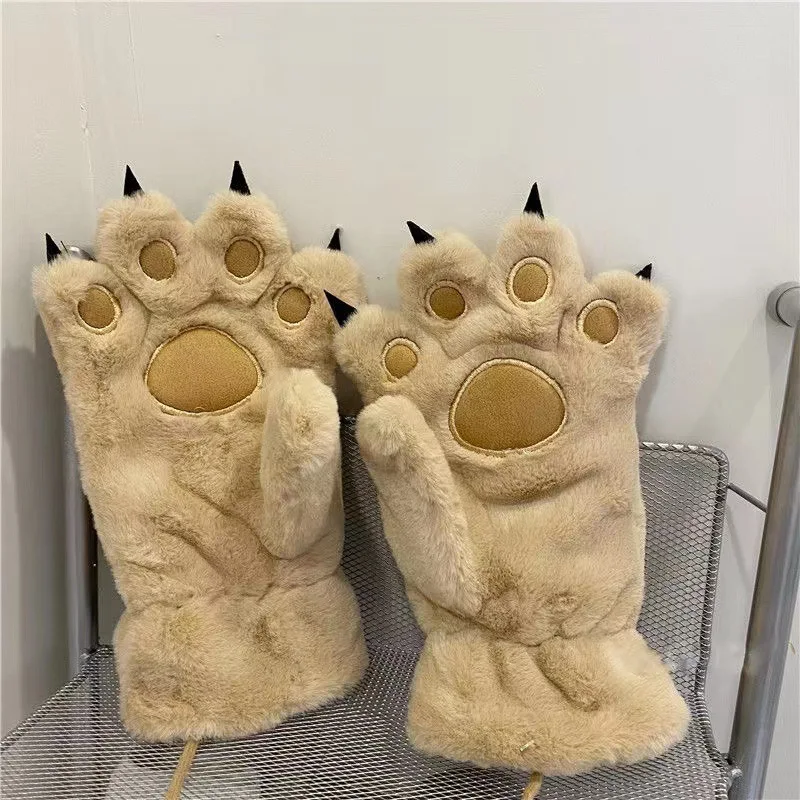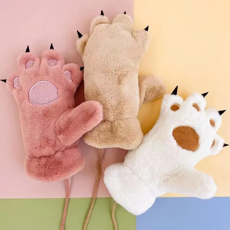 Cute Cat Claw Gloves Winter Girls Student Fur Thickened Animal Claw Warm Big Bear Palm Gloves Female