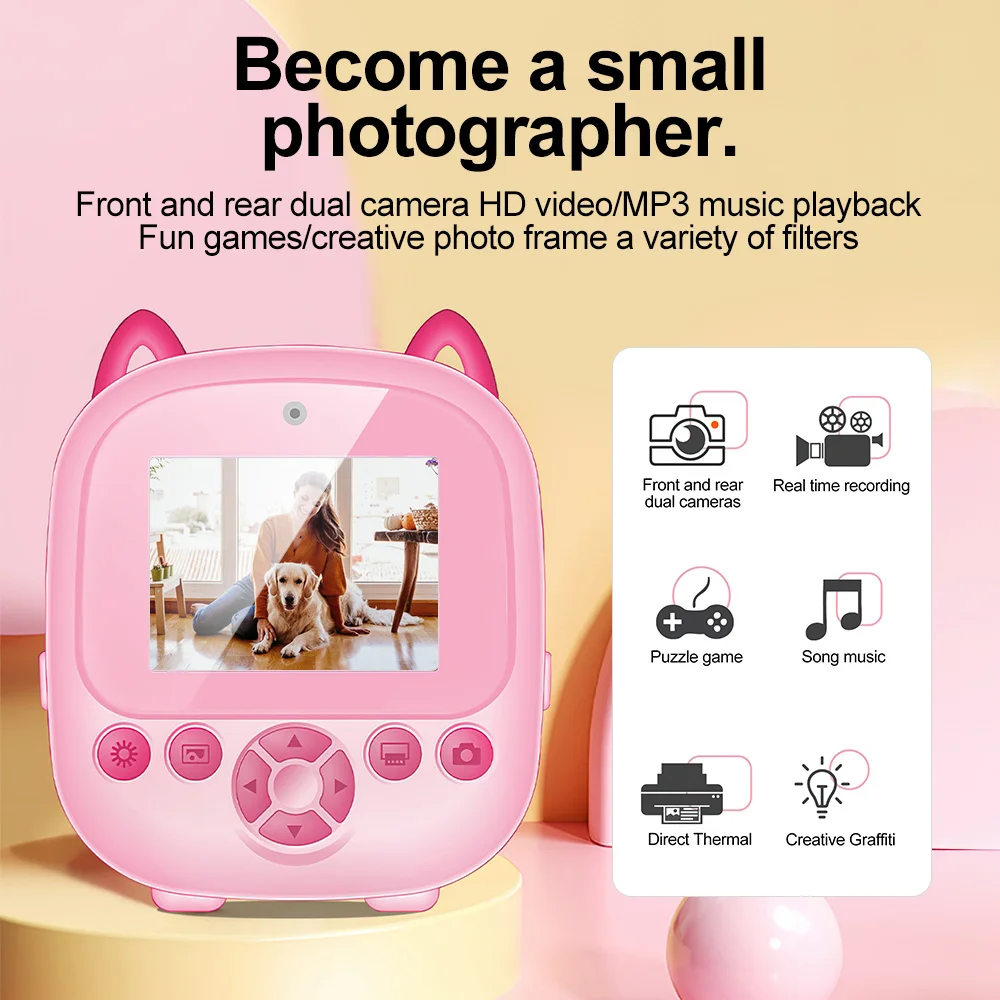 | Color | 1Roll-Print Blue, 1Roll-Print Green, 1Roll-Print Orange, 1Roll-Print Red, 5Rolls-Print Black, 8GB-TF Card, Blue Camera, Pink Camera |