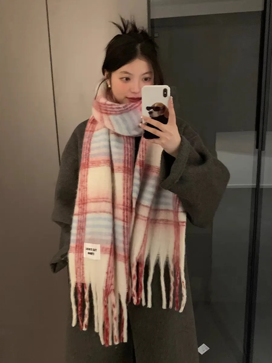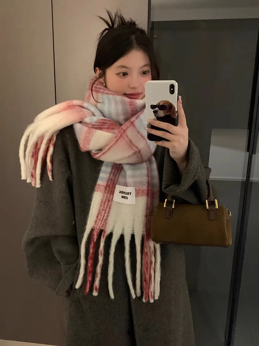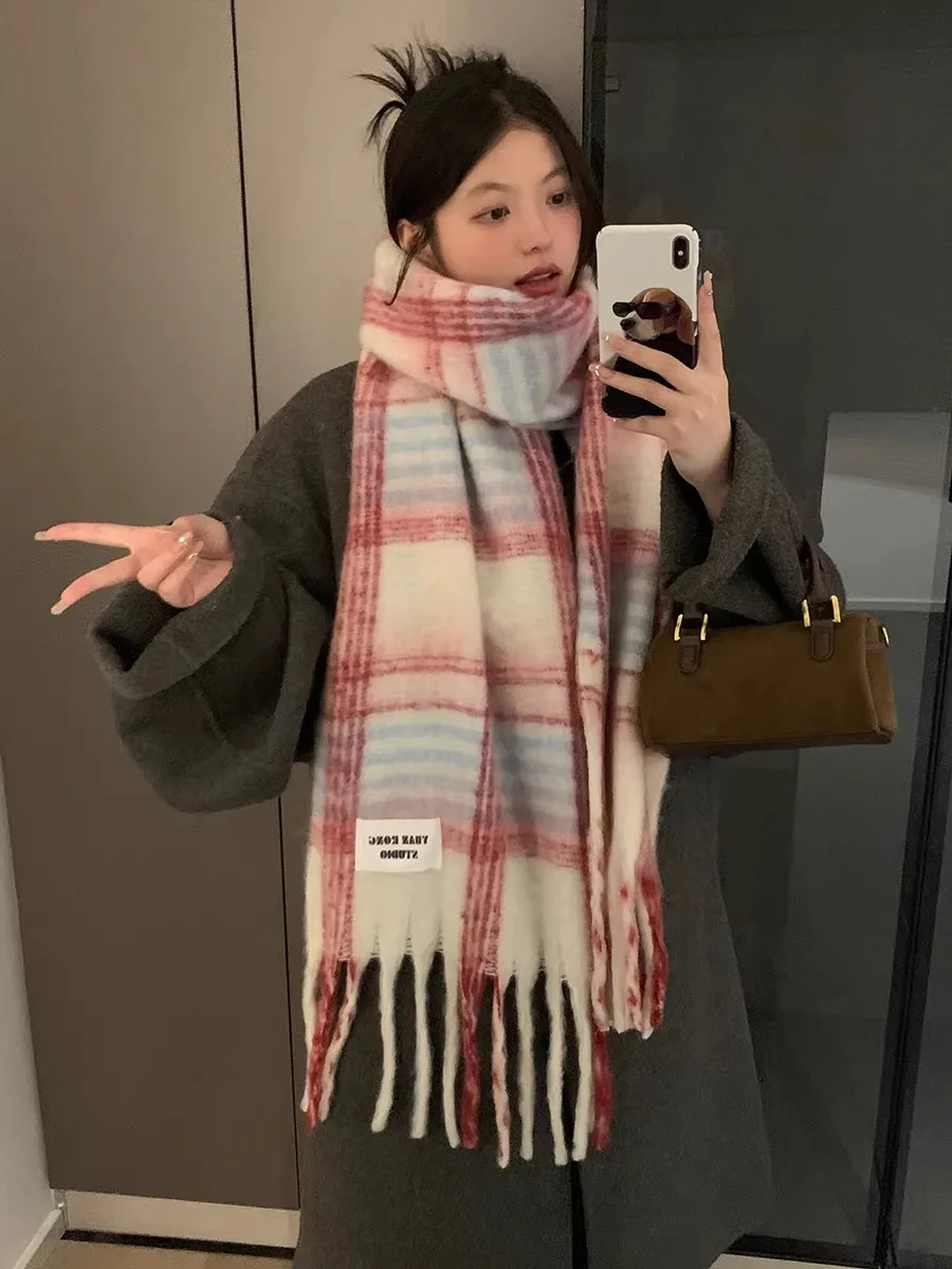 Cute Thickened Plaid Scarf For Women New Winter 2025 Model With A High-End Feel Warm And Cold-Proof Neck Warmer