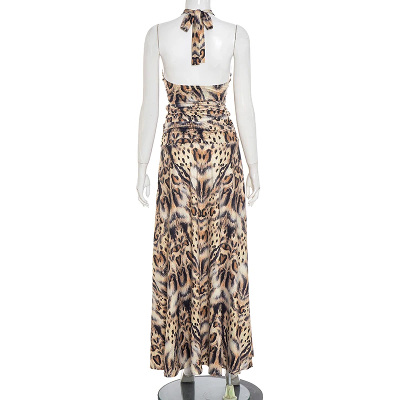CUTENOVA Evening Party Set For Women Sexy Leopard Print Halter Neck Strapless Top Slit Skirt Two-Piece Set Chic Elegant Suit