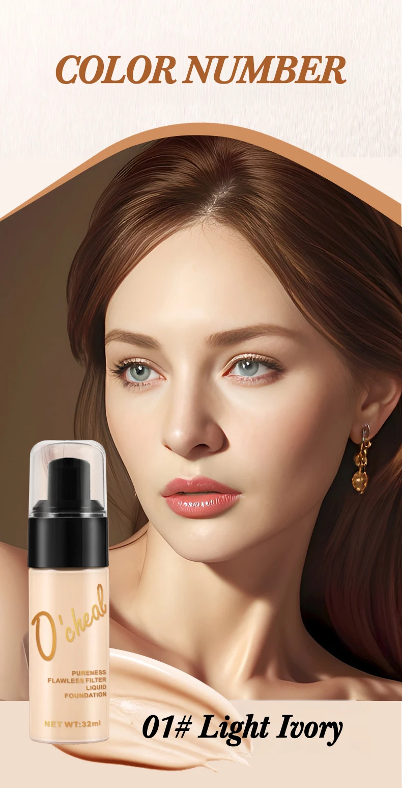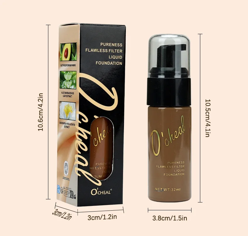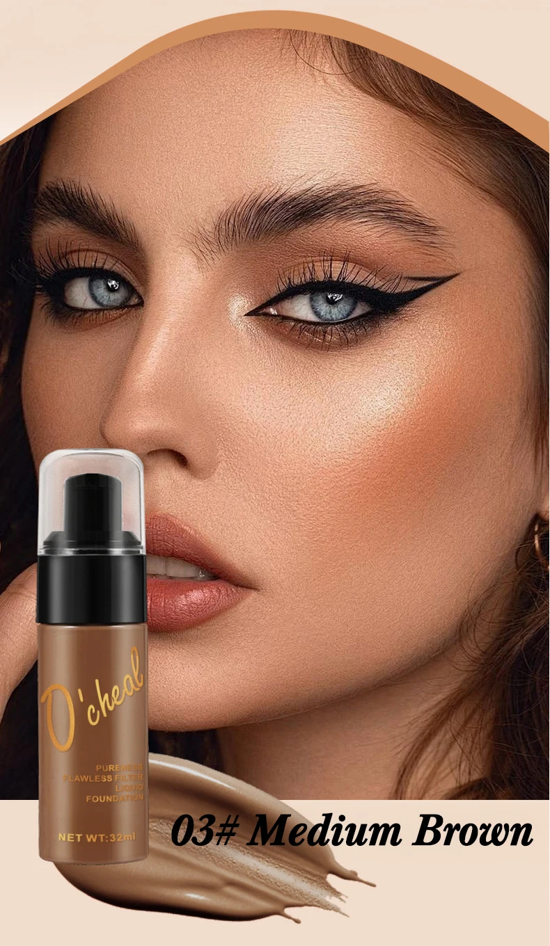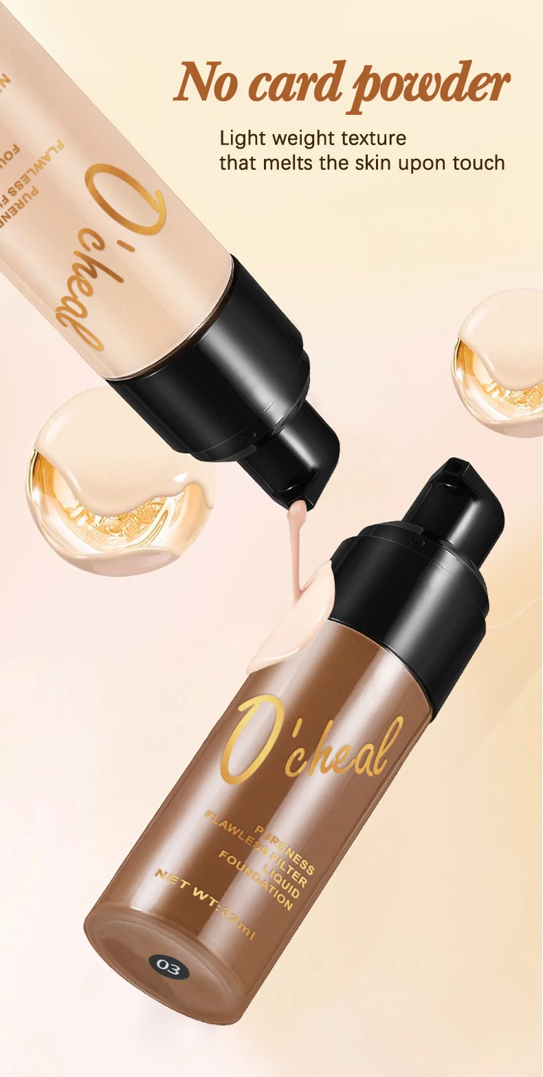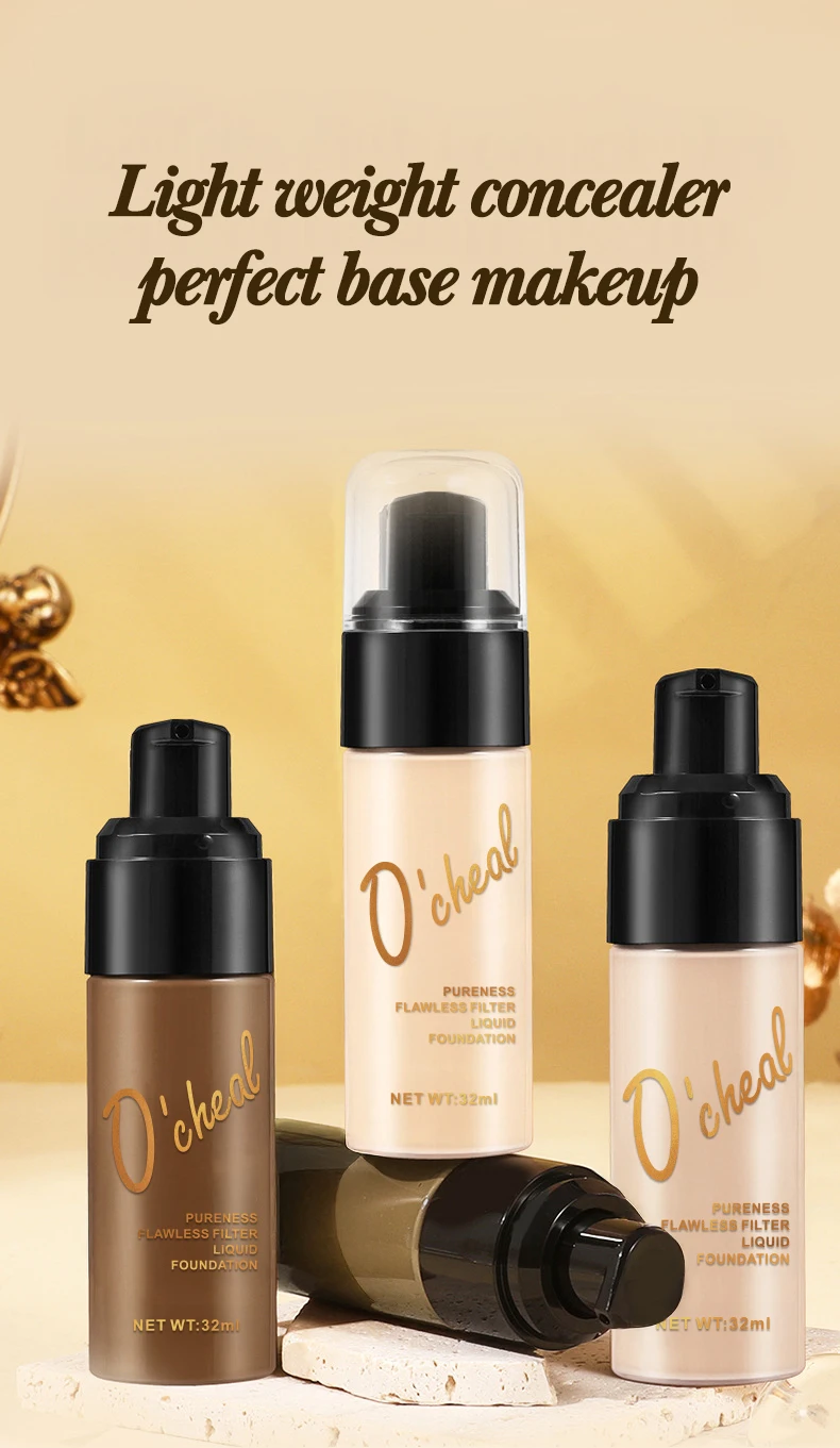 OCHEAL Dark Skin Concealer Liquid Foundation Waterproof Long Lasting Hides Pores No Card Powder BB Cream
