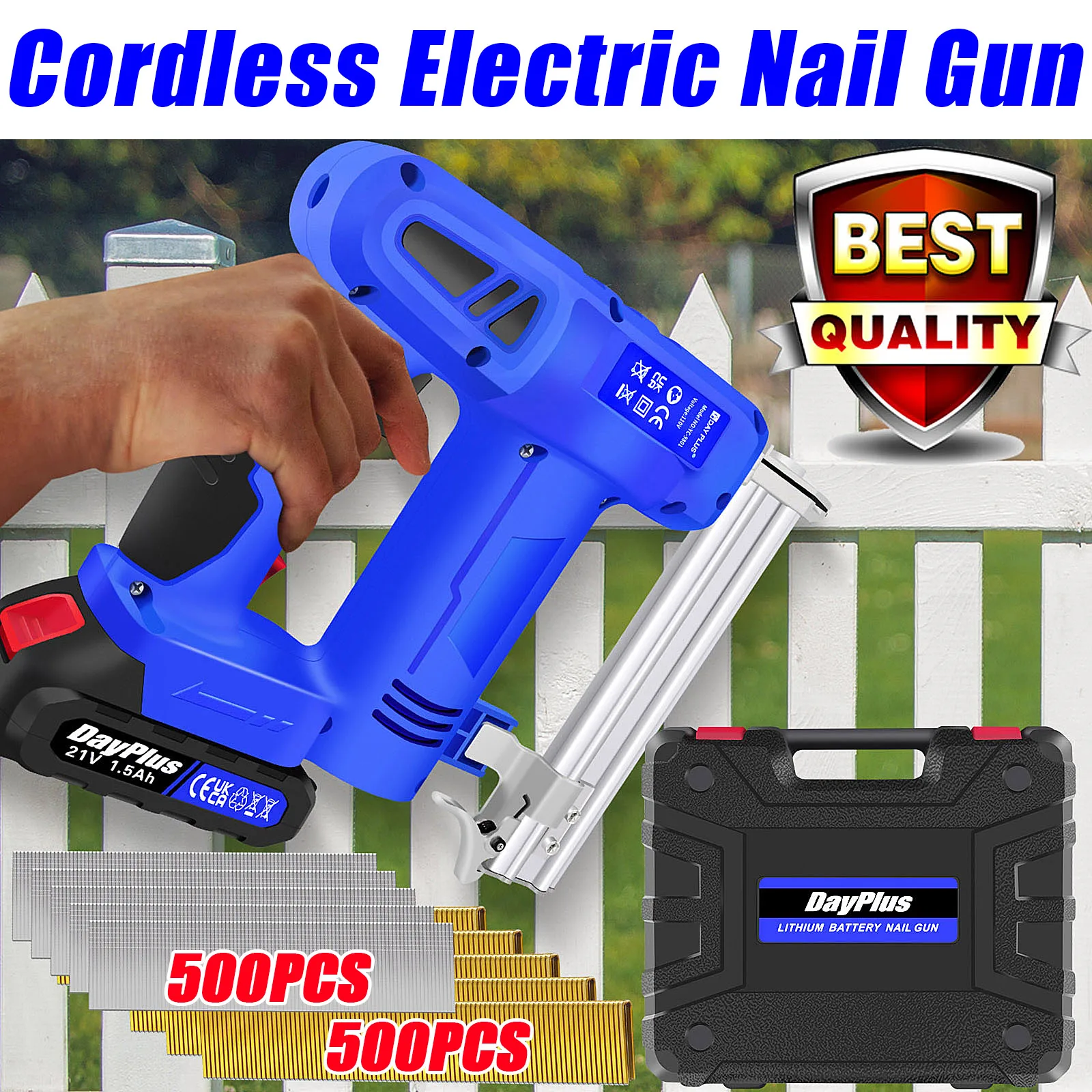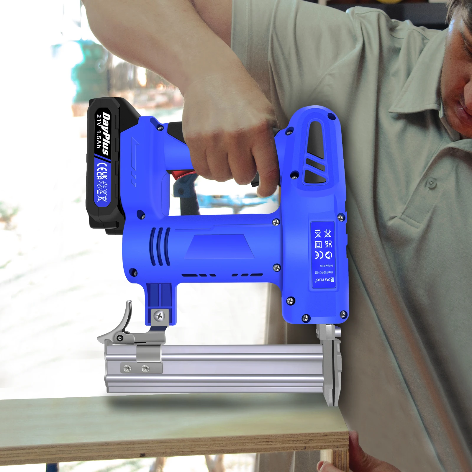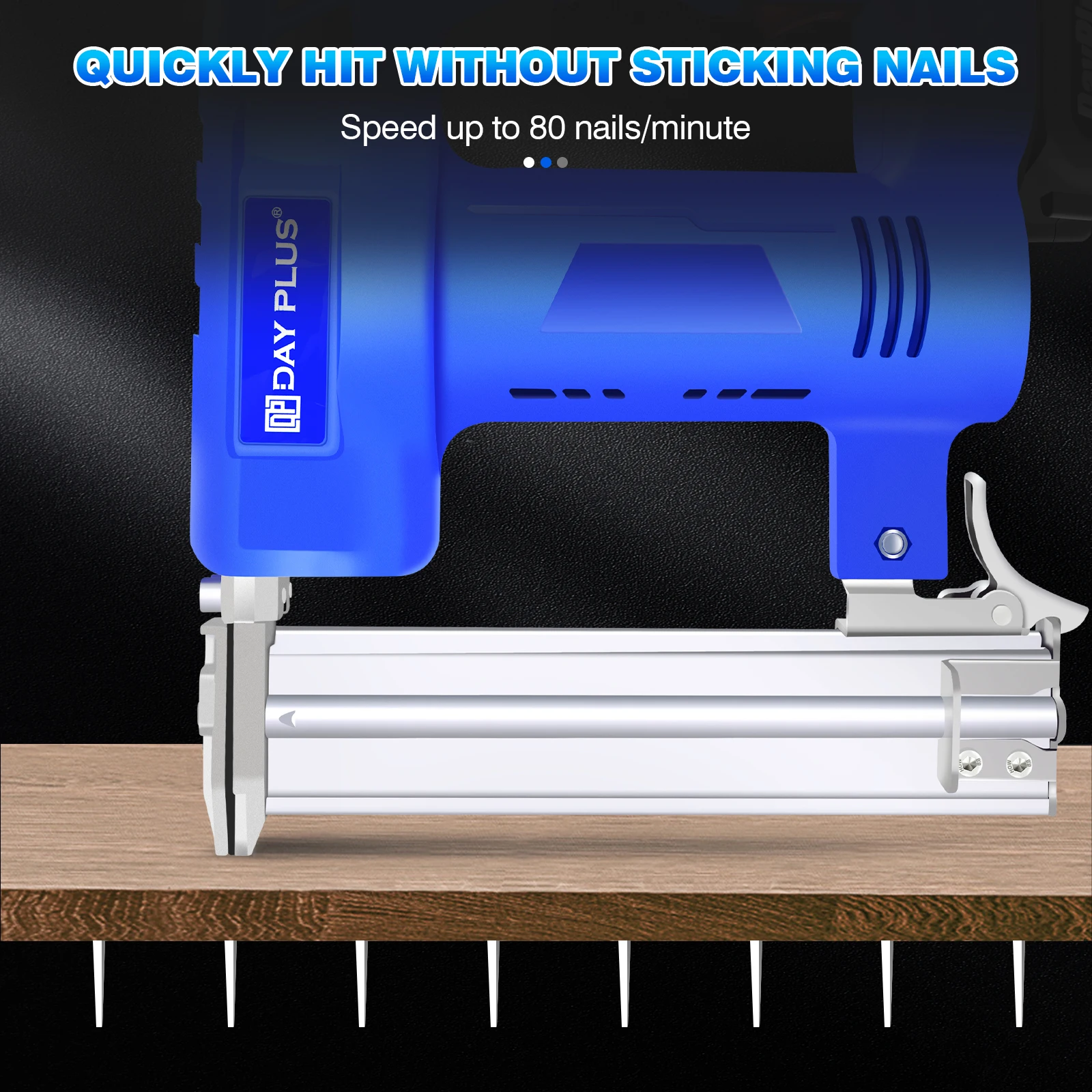 DayPlus 2 IN 1 Cordless Electric Nail Gun for Straight/U-shape Nails Copper Motor Woodworking Universal Brad Nailer Stapler DIY