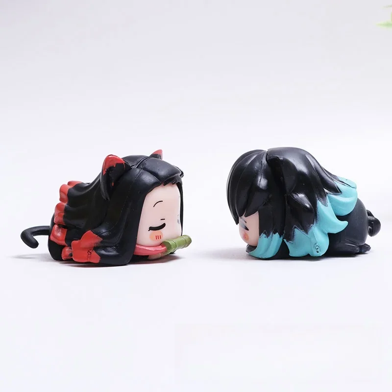 Demon Slayer Mitsuri Figure Kimetsu No Yaiba Cat Nezuko Statue Cute Muichirou Action Figurine Sculpture Desk Decoration Ornament