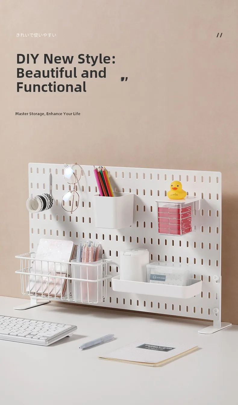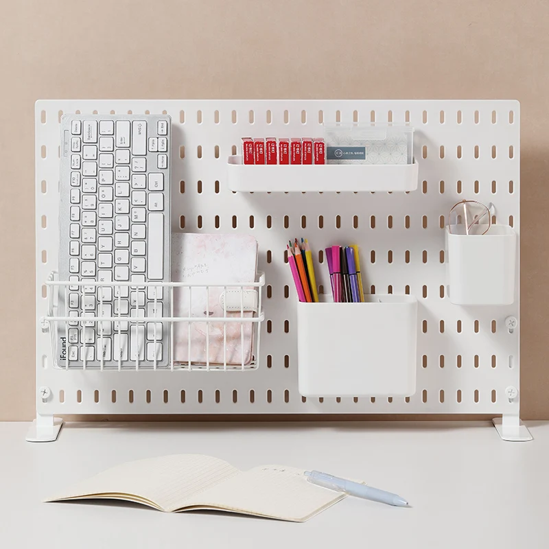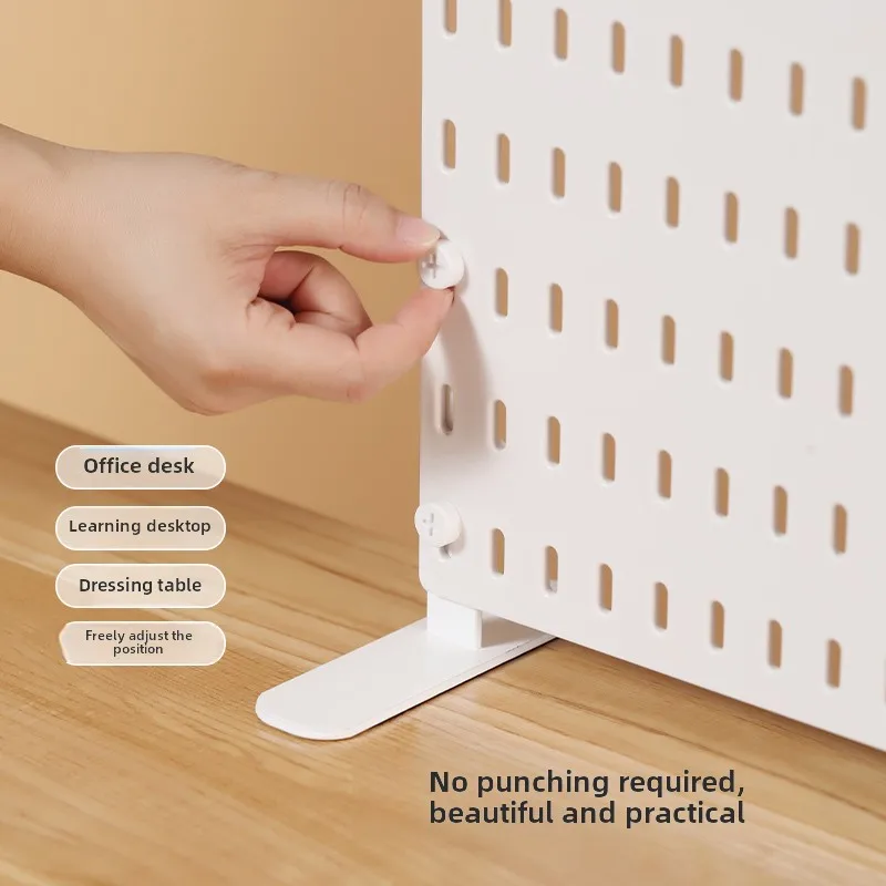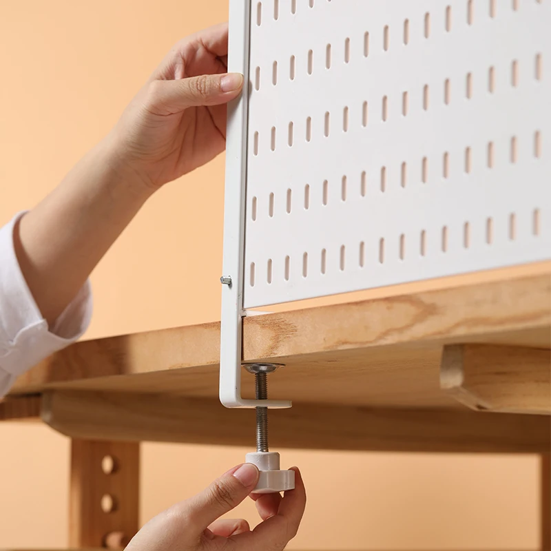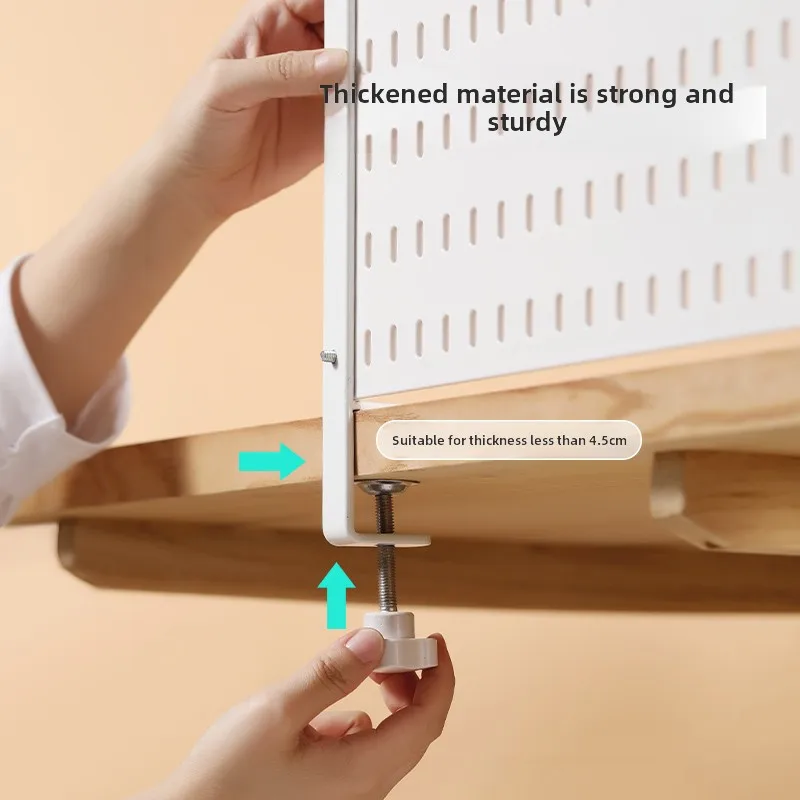 The MiMu desktop hole board accessory can be easily attached to your desk without any drilling, making it a convenient addition for any workspace.