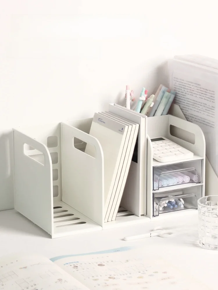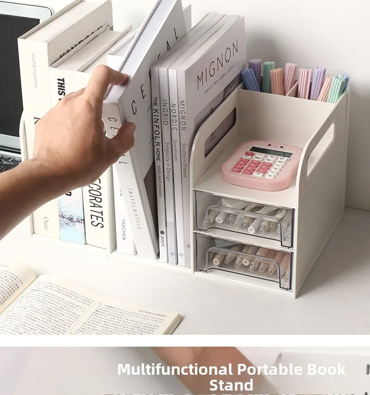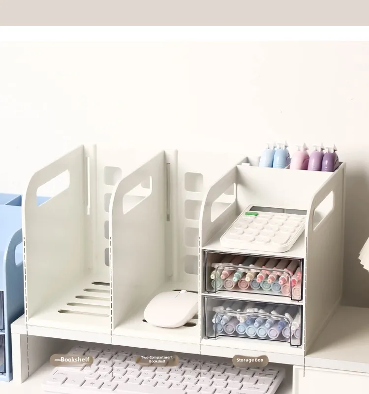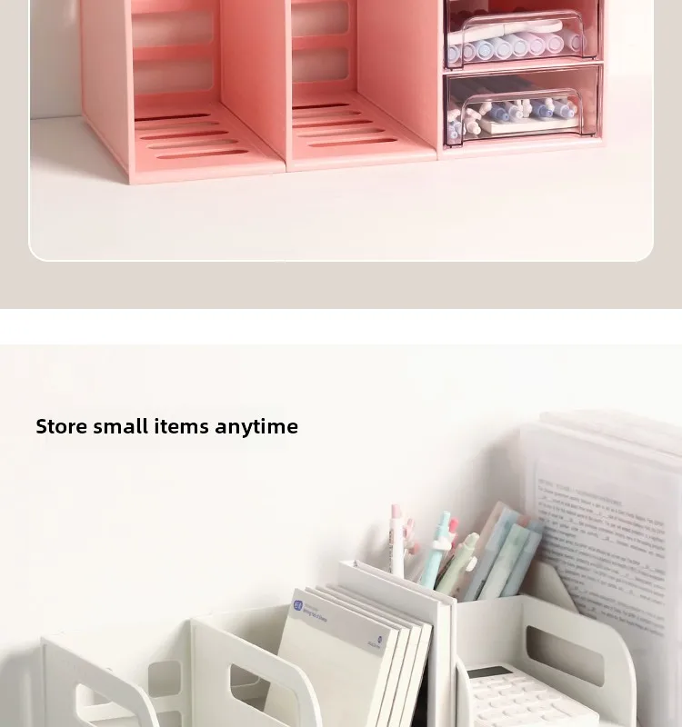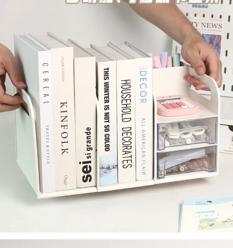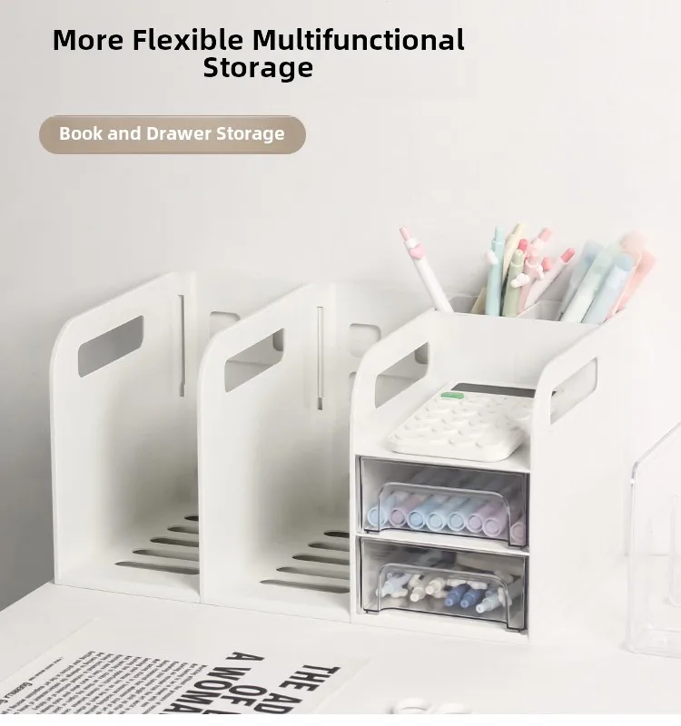This drawer-style book organizer is a versatile storage solution for your desk, perfect for college students living in dormitories.
