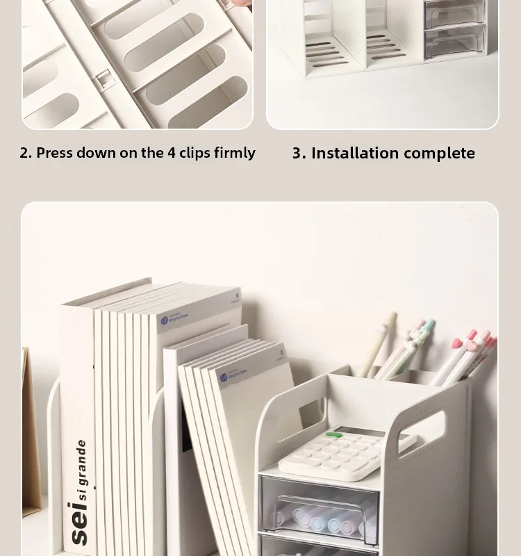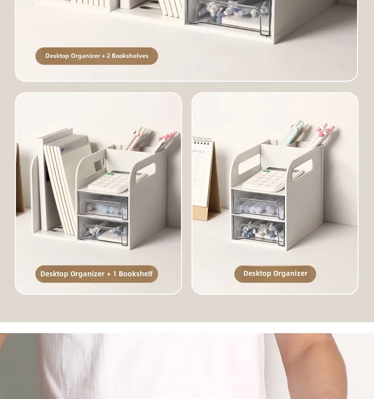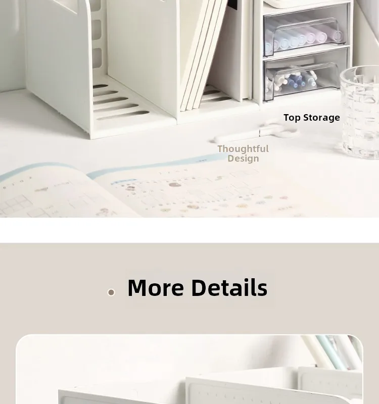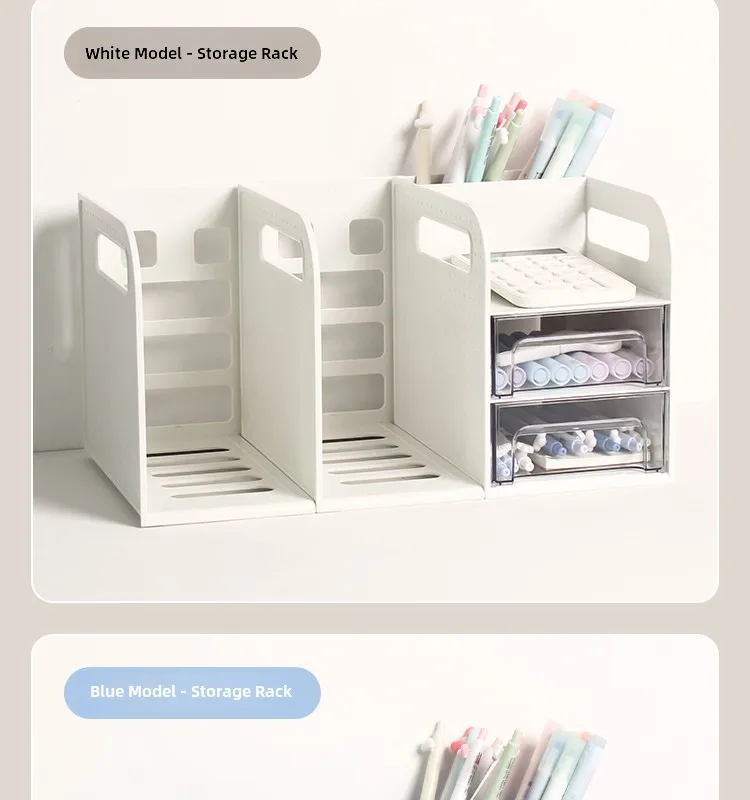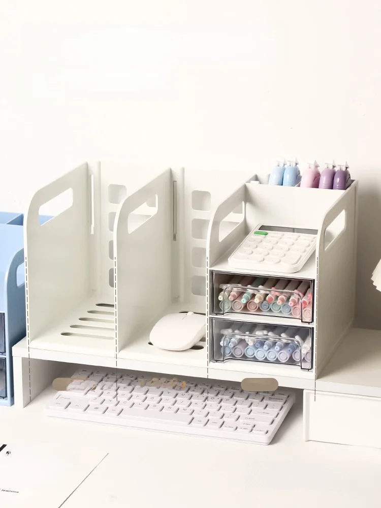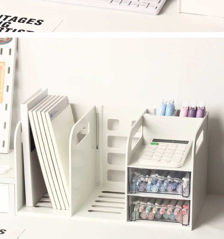 This drawer-style book organizer is a versatile storage solution for your desk, perfect for college students living in dormitories.