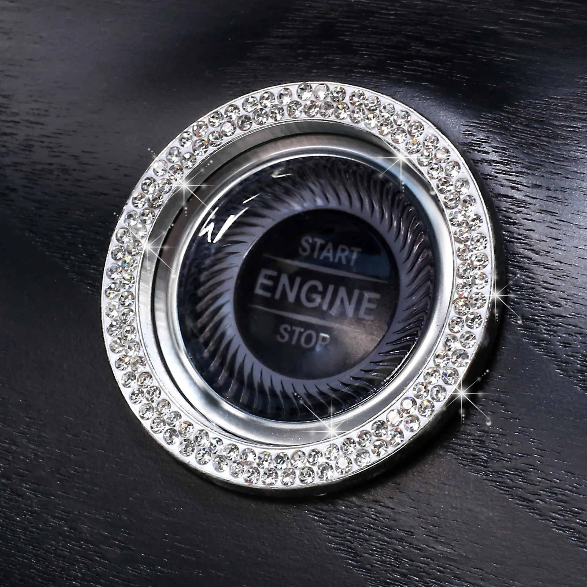 Diamond Engine Ignition Onekey Start Stop Push Button Switch Protective Cover Bling Girls Auto Accessories Car Interior Decor