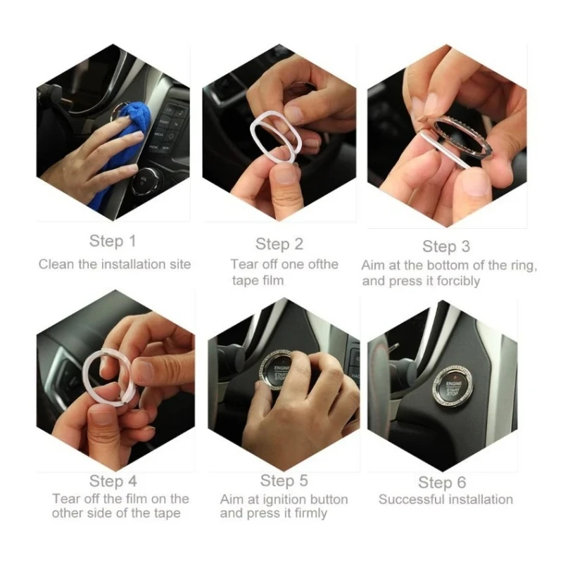 Decorative ring, used to decorate the car start button. The installation is simple and the appearance is beautiful.